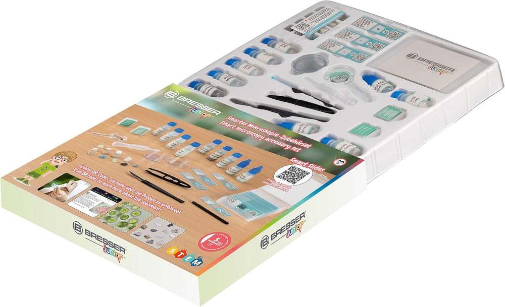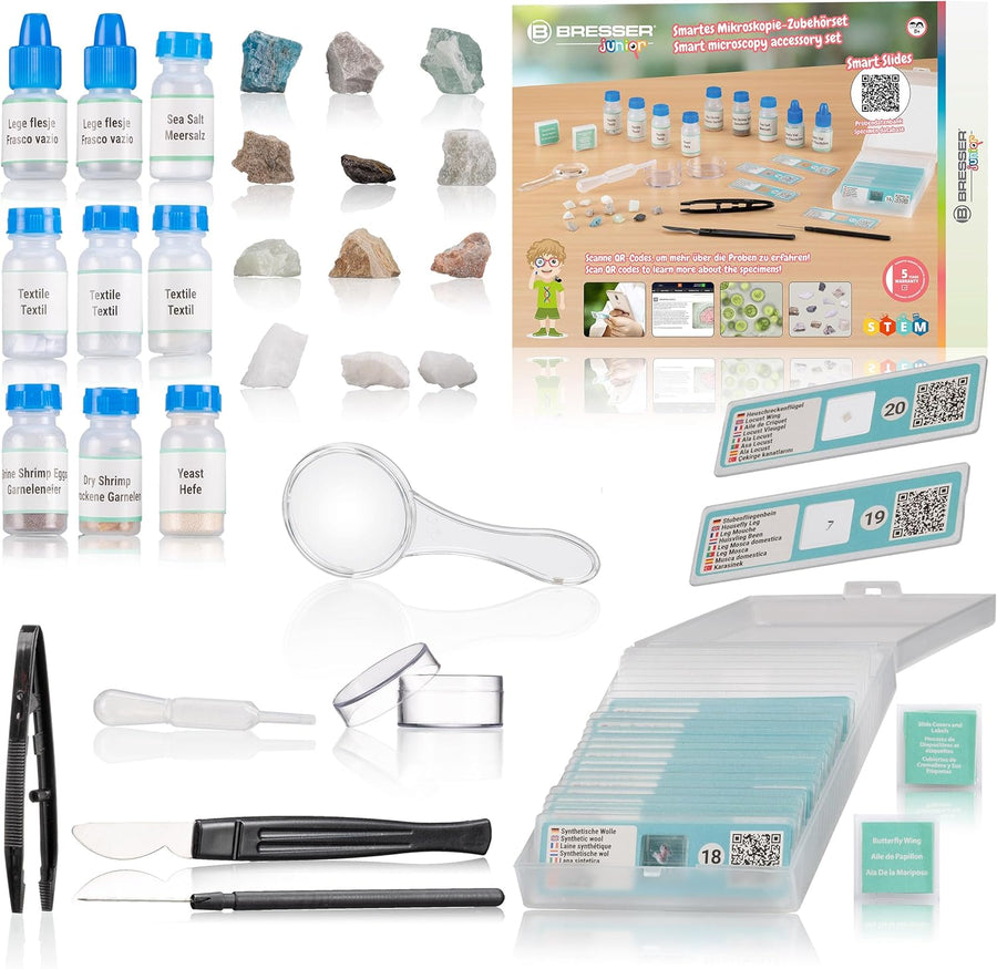 Bresser Junior smartes Mikroskop Zubehörset mit verschiedenen Steinen und Dauerpräparaten und vielem
