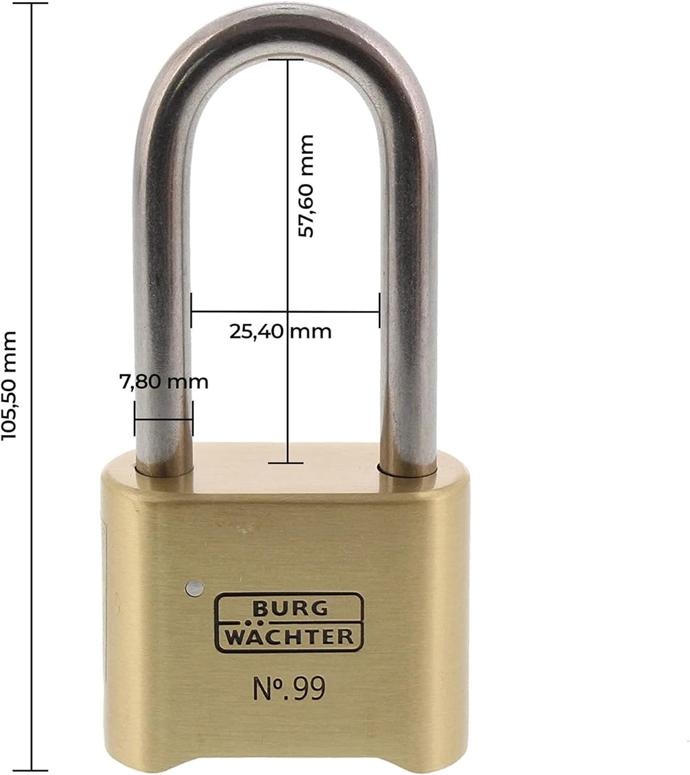 Burg-Wächter Vorhängeschloss, Rostfrei, mit Zahlenschloss, 7,8 mm Bügelstärke, Massiver Messingkörpe