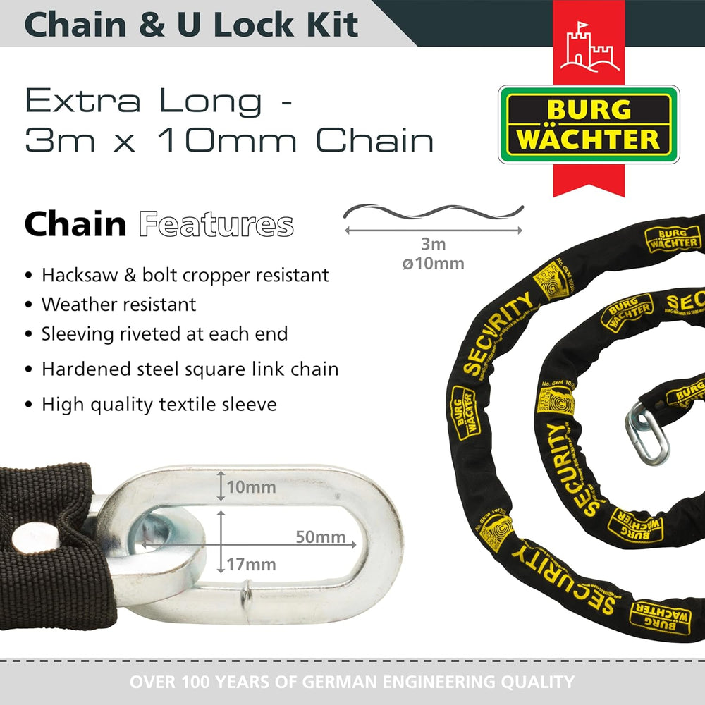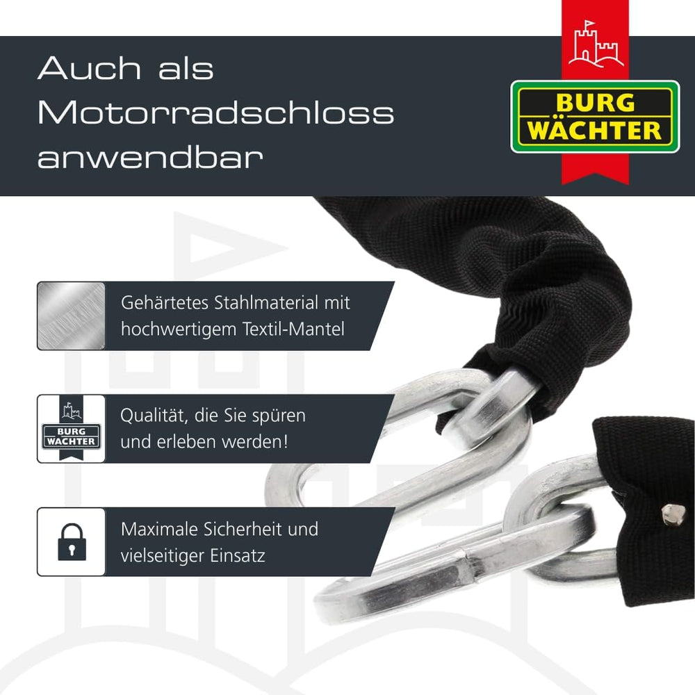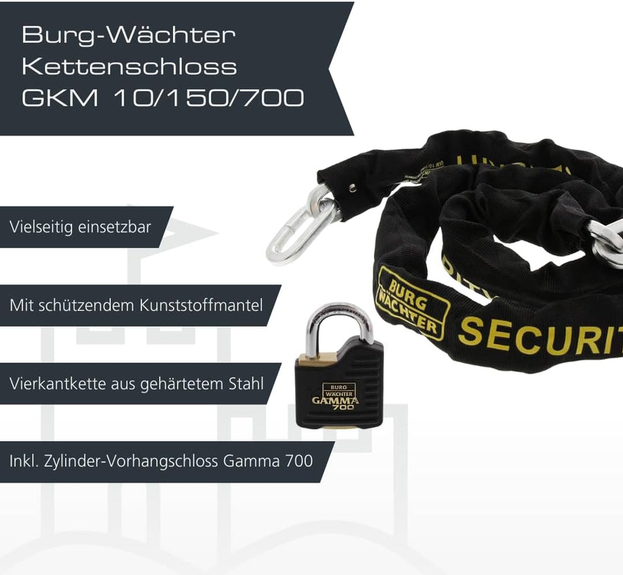 Burg-Wächter Vierkantkette, Set mit Schloss, Kette für Fahrrad, Motorrad, E-Scooter, Gartenmöbel, SK