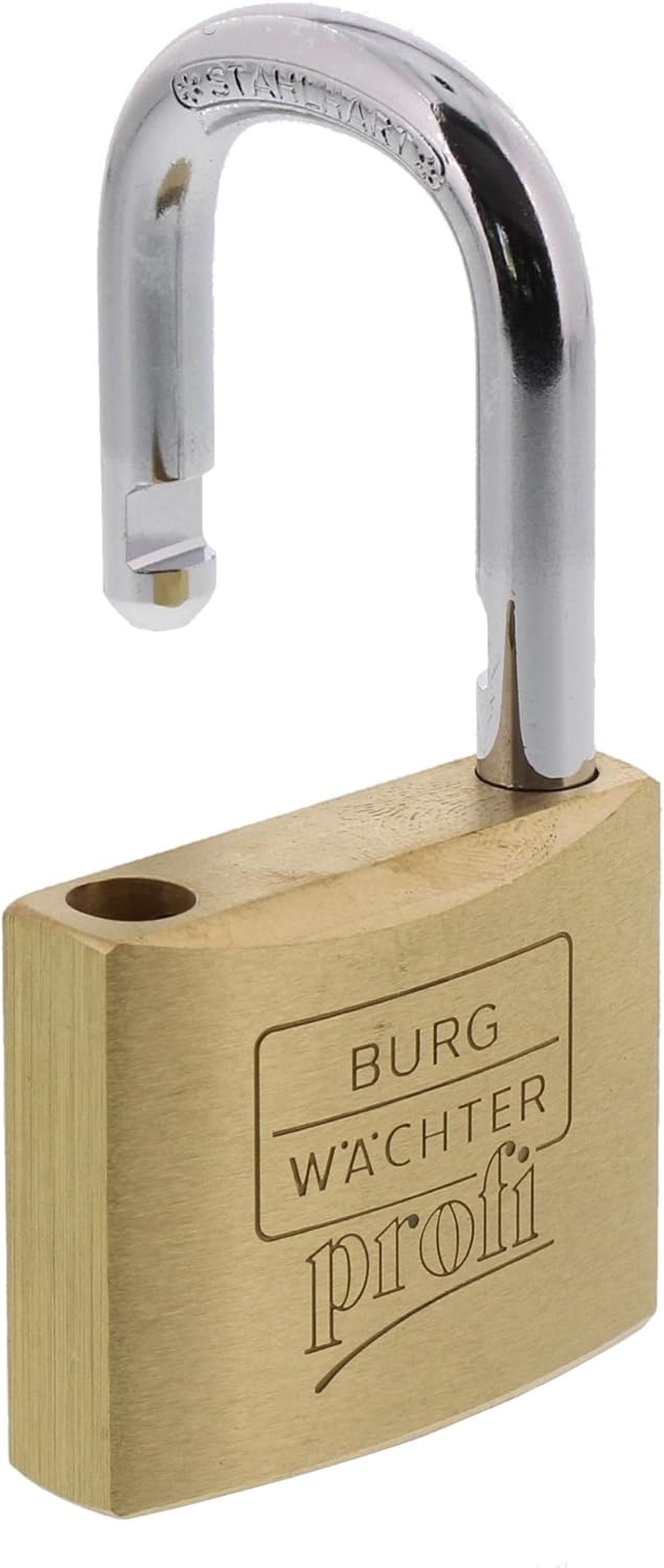 BURG-WÄCHTER Vorhängeschloss, Vorhangschloss mit 2 Schlüsseln, 8 mm Bügelstärke, Massiver Messingkör