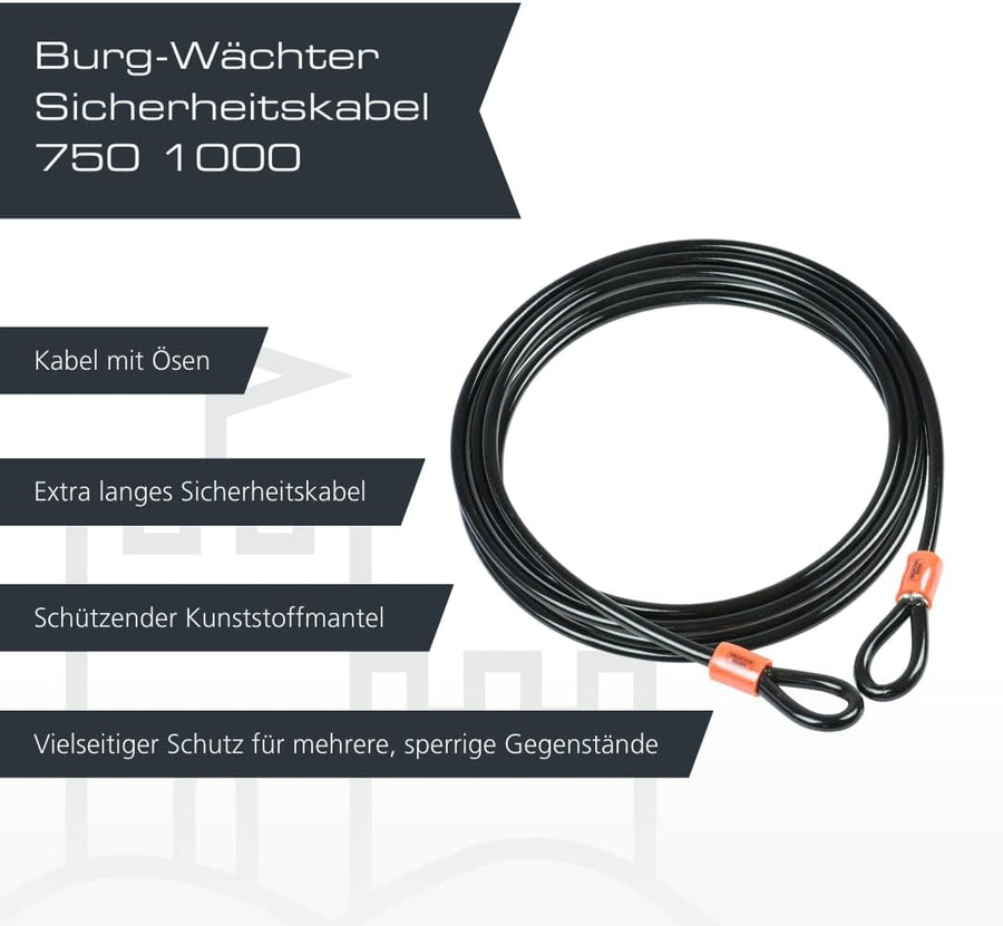 BURG-WÄCHTER Sicherheitskabel mit Ösen, Ummanteltes Stahlseil (ohne Schloss), Sicherung für Gartenmö