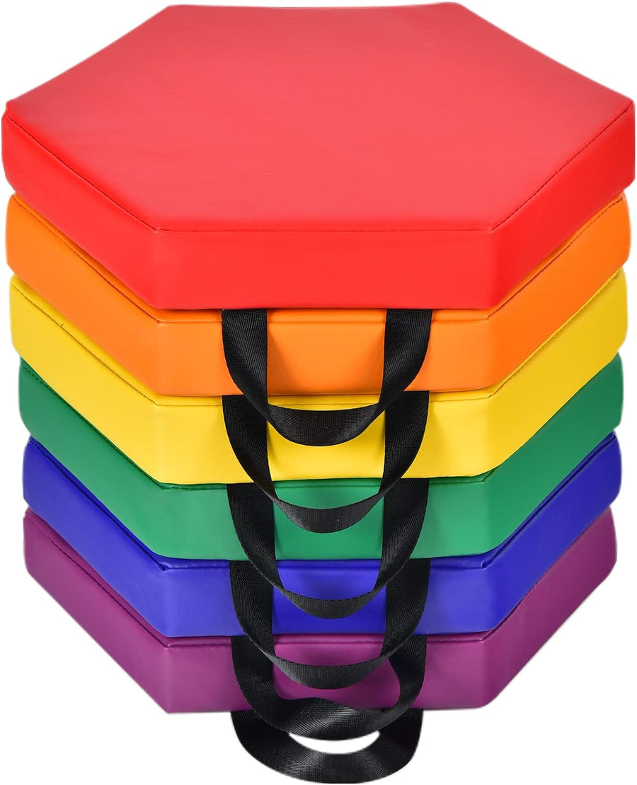 COSTWAY 6er Set Kinder Stuhlkissen mit Griff, Bodenkissen mit Reissverschluss, Sitzkissen mehrfarbig