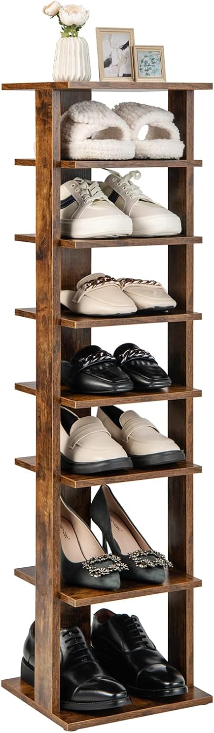 COSTWAY 8 stufiger Schuhständer höheverstellbar, Platzsparendes Schuhregal aus Holz, Schuh-Organizer