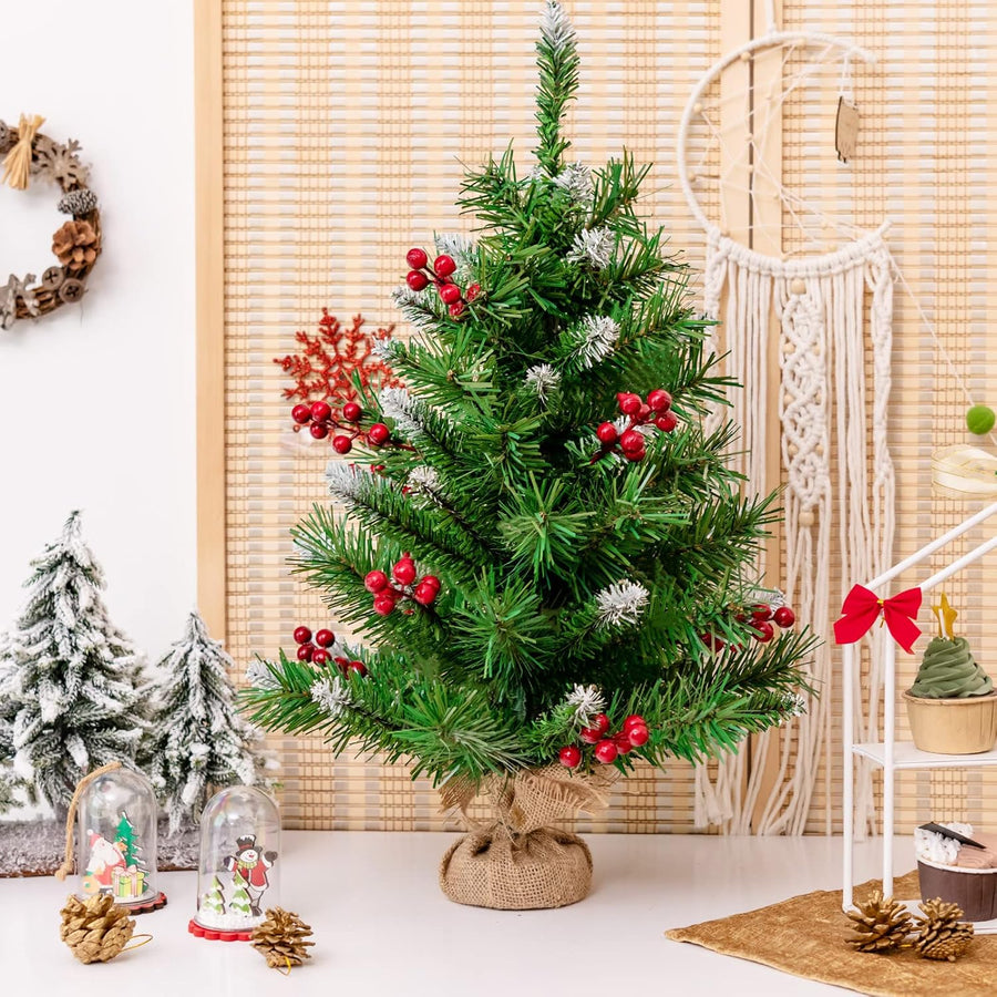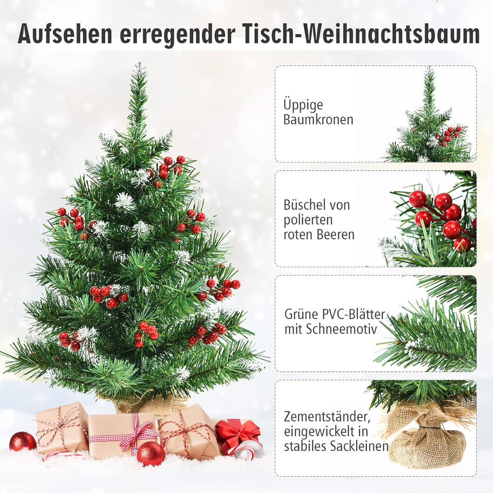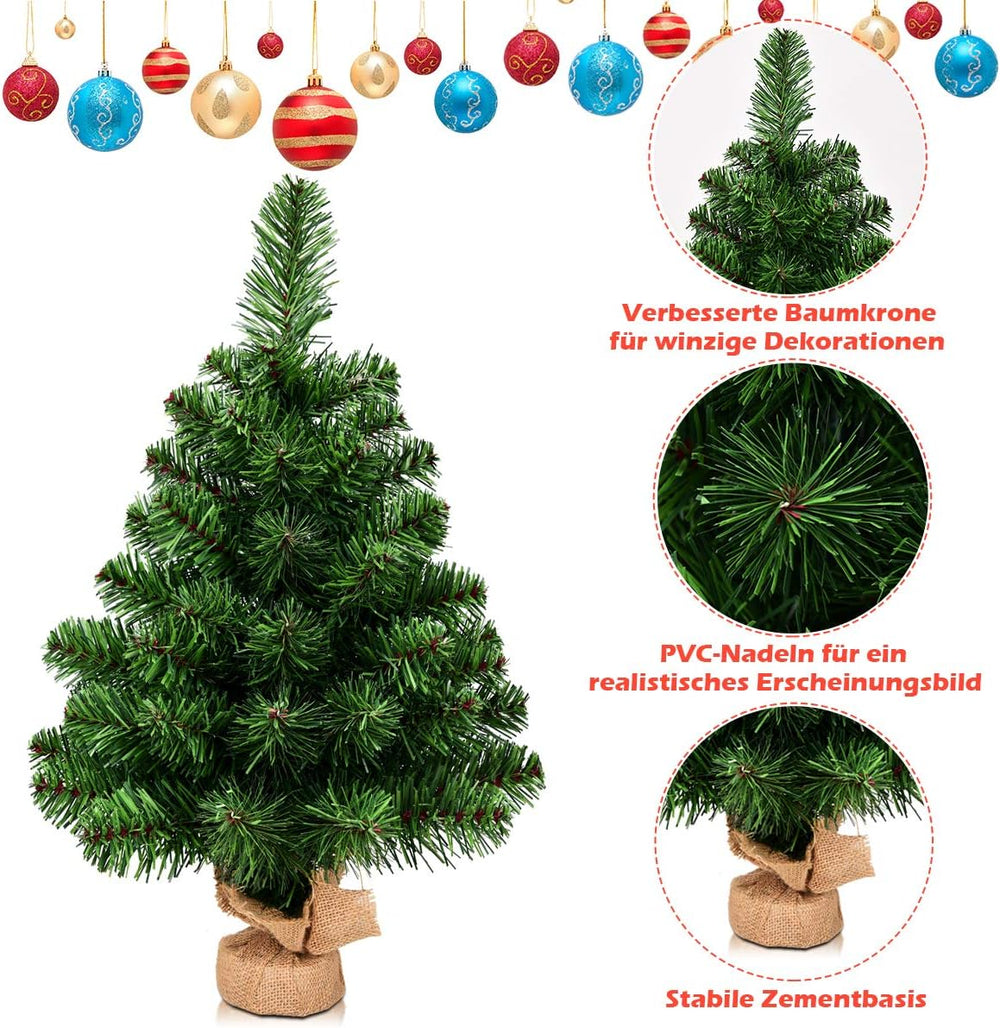 COSTWAY 60cm Kleiner Weihnachtsbaum, Mini Weihnachtsbaum mit 50 Zweigen und Sockel, künstlicher Tisc