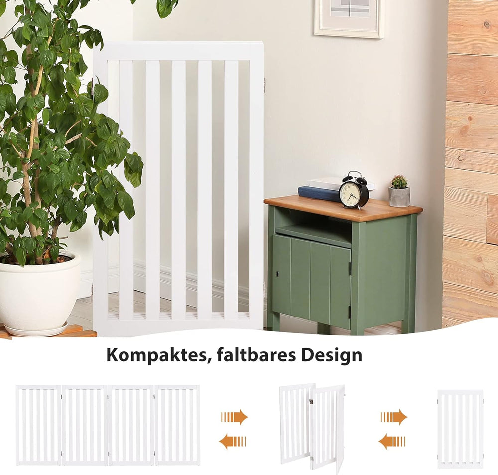 COSTWAY Absperrgitter Hunde 89cm Hoch, 4 Paneelen Schutzgitter Holz, Kindergitter klappbar, Treppeng