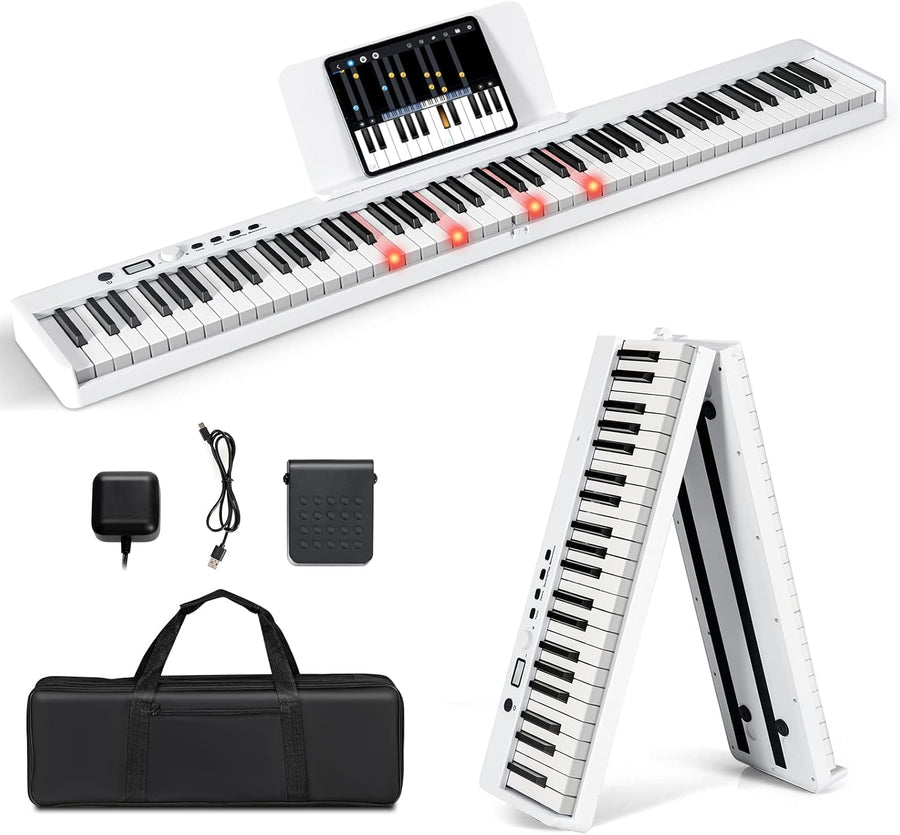 COSTWAY 88 Tastatur Elektroklavier faltbar, Digitale Keyboard tragbar (128 Rhythmen, 128 Töne und 20