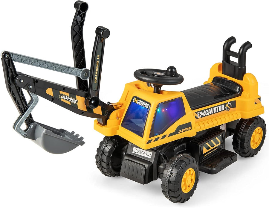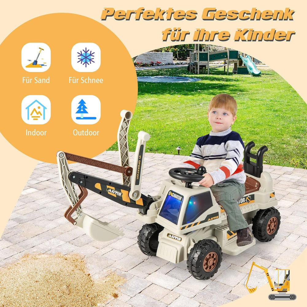 COSTWAY 6V Kinder Sitzbagger mit drehbarer und Verstellbarer Schaufel, Elektro Kinderbagger mit LED