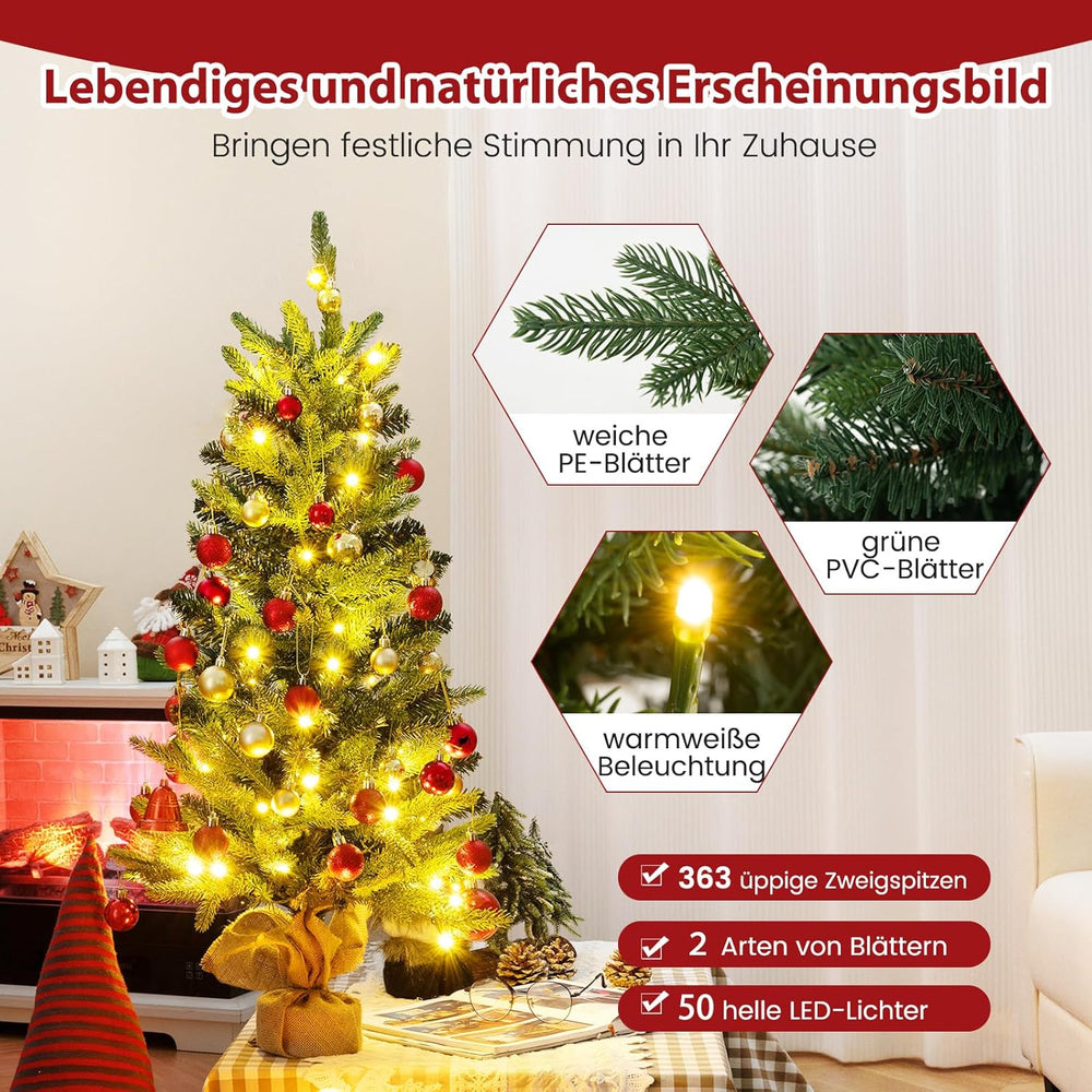 COSTWAY 90 cm künstlicher Weihnachtsbaum mit Beleuchtung, Kleiner Tannenbaum, Tisch-Weihnachtsbaum m
