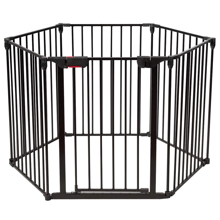 COSTWAY Baby Kaminschutzgitter klappbar, Laufgitter mit Sicherheitstür, Ofenschutzgitter inkl. Wandh
