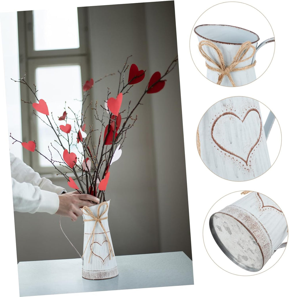 Cabilock Vintage Blumenvase Herz Milchkanne Eisen Blumentopf Shabby Chic Deko Landhaus Vase Rustikal