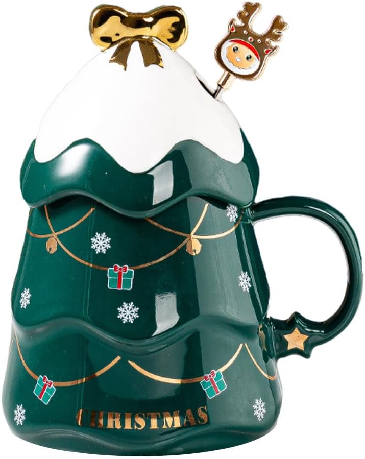 Cabilock Weihnachten Baum Tasse Weihnachten Keramik Becher Keramik Kaffee Becher mit Glück Bogen Dec