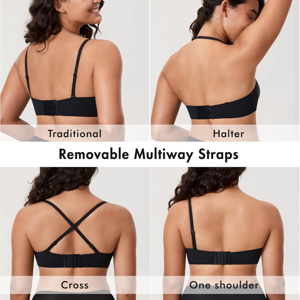 DELIMIRA Damen Trägerloser BH - Bügel,weichen Cups,abnehmbare Trägern 75B Schwarz, 75B Schwarz