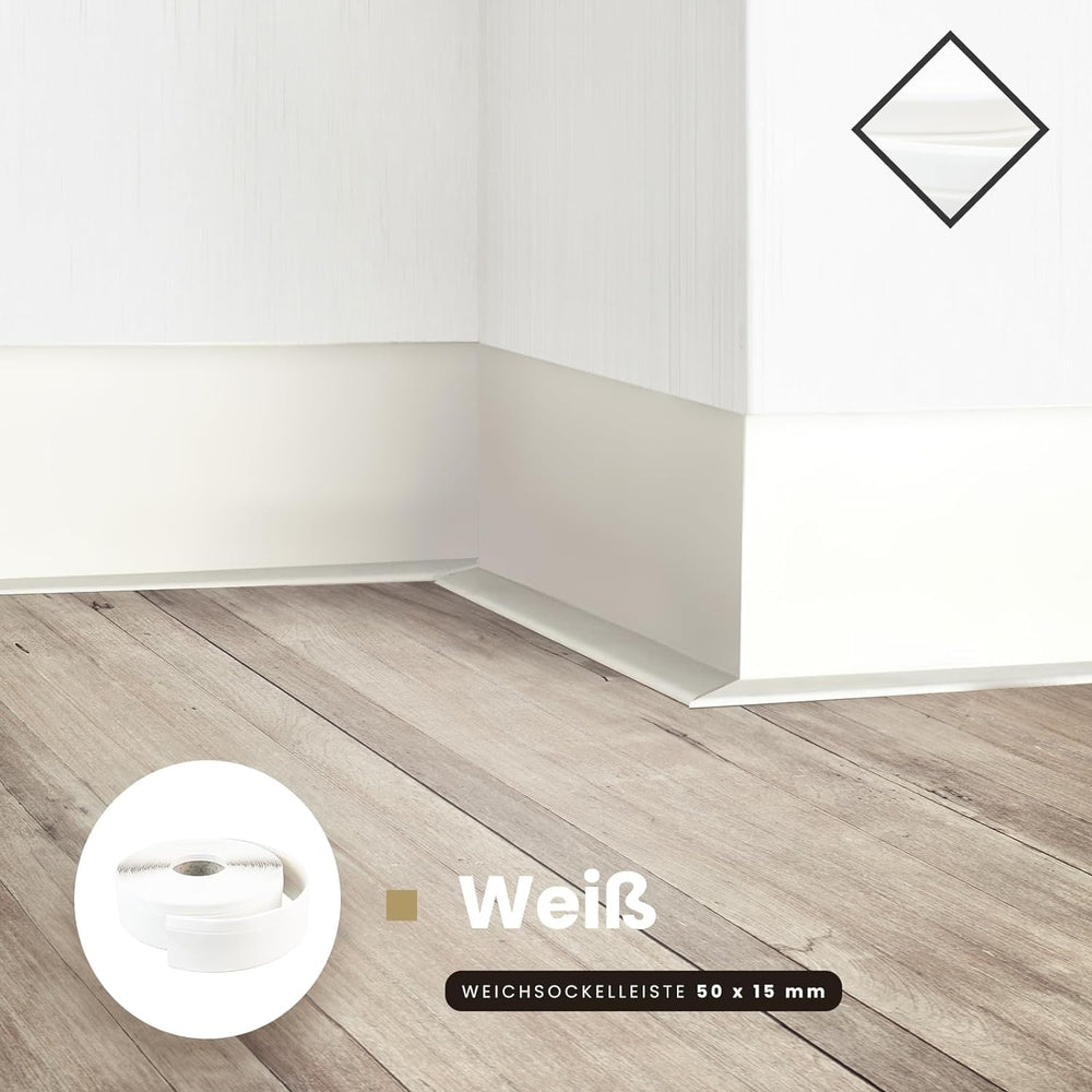 DQ-PP WEICHSOCKELLEISTE | 10m | weiss | 50x15mm | PVC | selbstklebend | Knickwinkel Fussleisten Gumm
