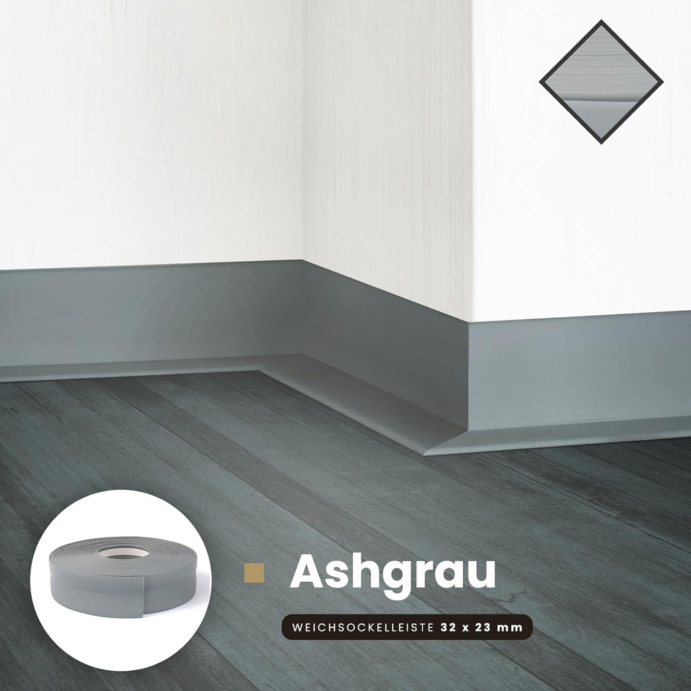 DQ-PP WEICHSOCKELLEISTE | 20m | ashgrau | 32x23mm | PVC | selbstklebend | Knickwinkel Fussleisten Gu