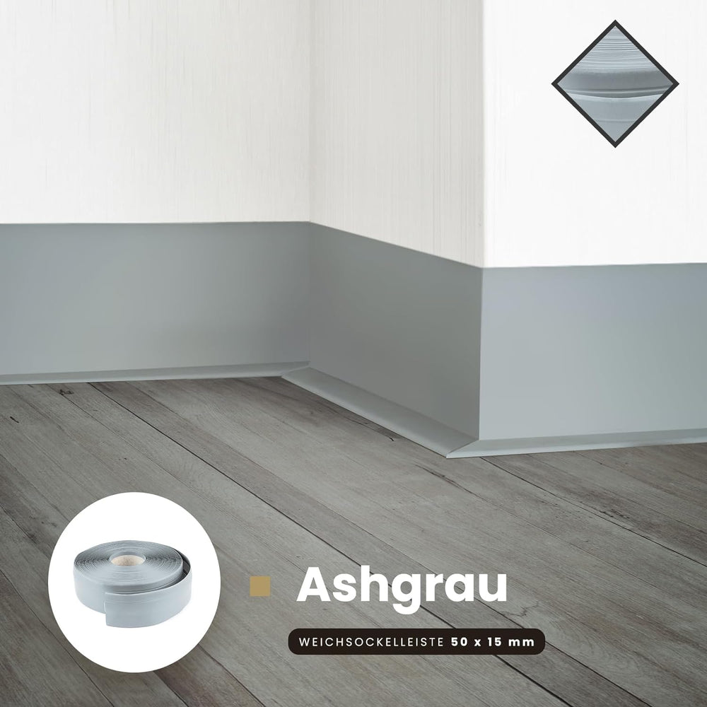 DQ-PP WEICHSOCKELLEISTE | 10m | ashgrau | 50x15mm | PVC | selbstklebend | Knickwinkel Fussleisten Gu