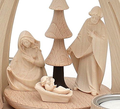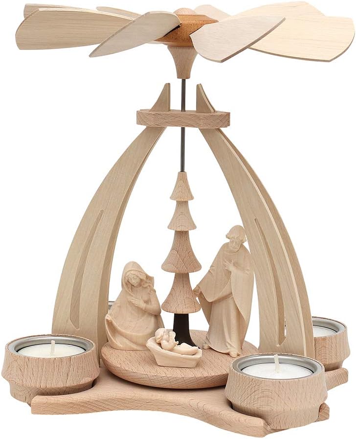 Dekohelden24 Tisch-Pyramide aus Buchenholz Christi Geburt mit Handgeschnitzten Tiroler Figuren für 4