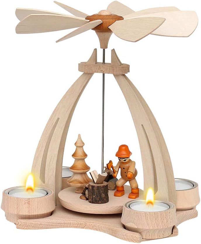 Dekohelden24 Tisch-Pyramide aus Buchenholz Waldarbeiter mit Beil und Hackklotz, ca. 24 cm, Waldarbei