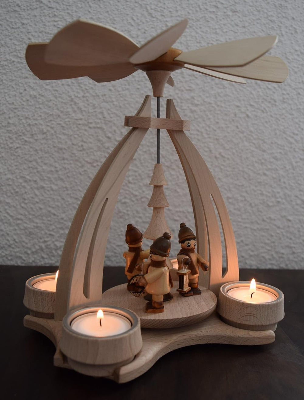 Dekohelden24 Tisch-Pyramide aus Buchenholz 3 Laternenkinder, ca. 24 cm, Laternenkinder