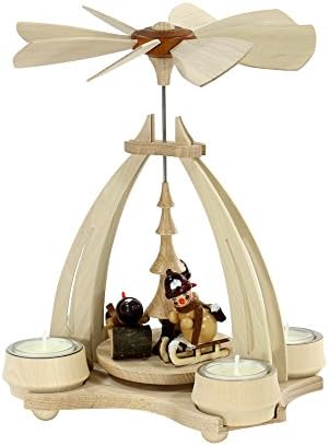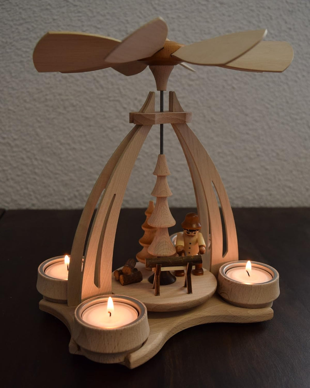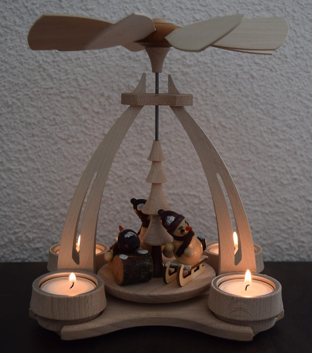 Dekohelden24 Tisch-Pyramide aus Buchenholz mit Winterfütterung, für 4 Teelichte geeignet, L/B/H ca.