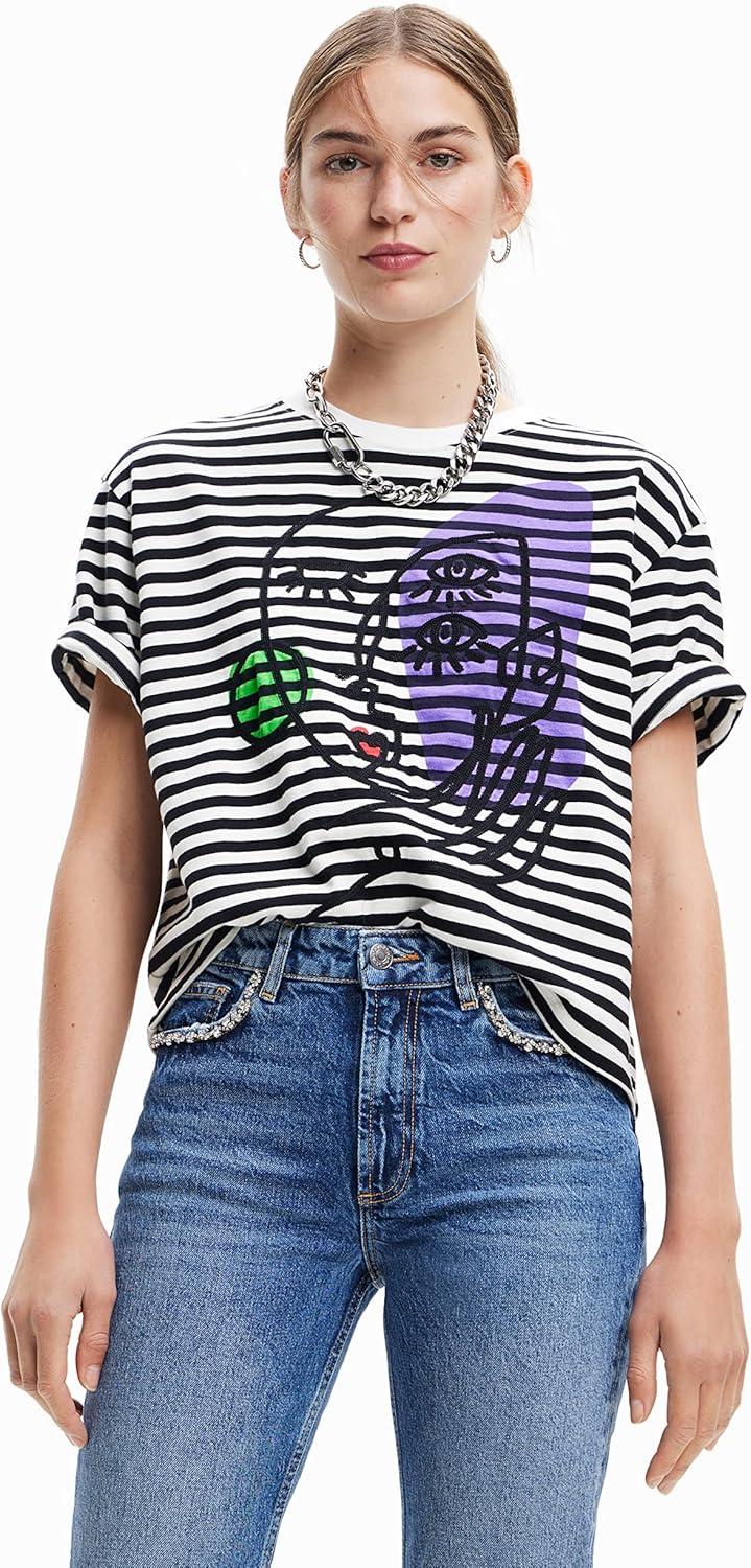 Desigual Damen T-Shirt L Schwarz, L Schwarz