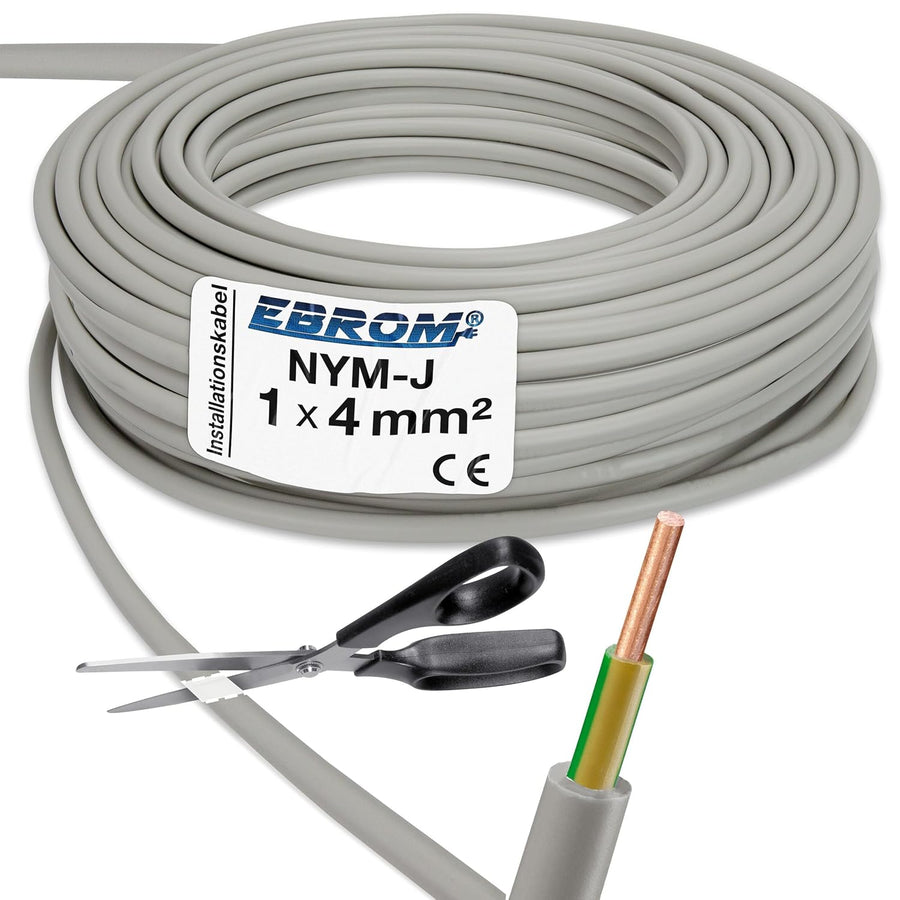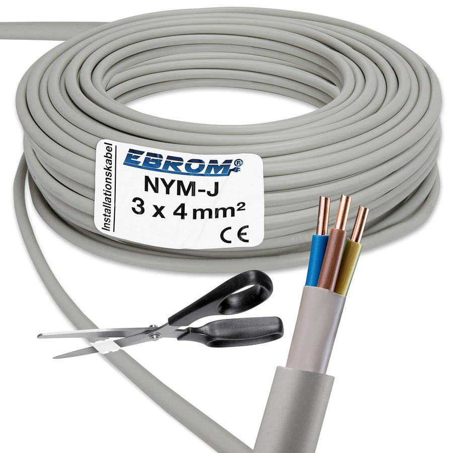 EBROM NYM-J 3x4 mm² - Mantelleitung - Installationskabel - Feuchtraumkabel - grau - Auswahl in 1 Met