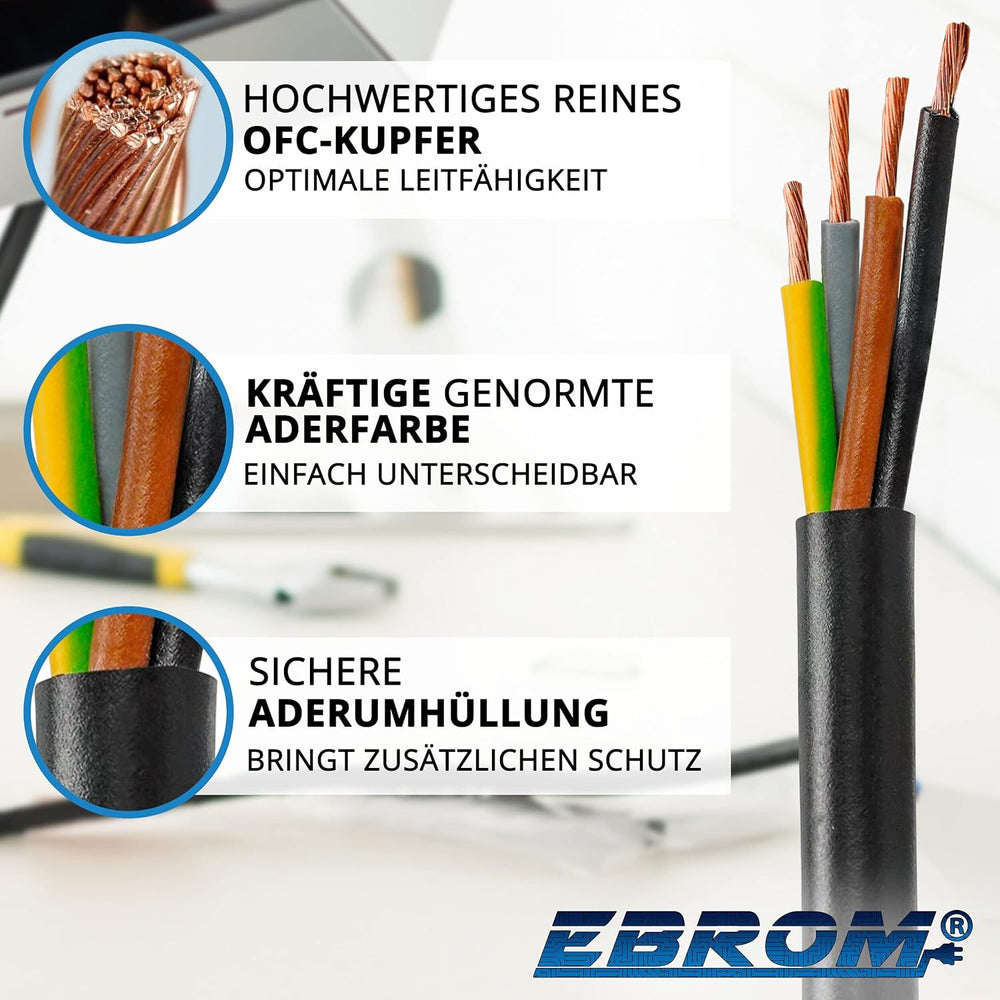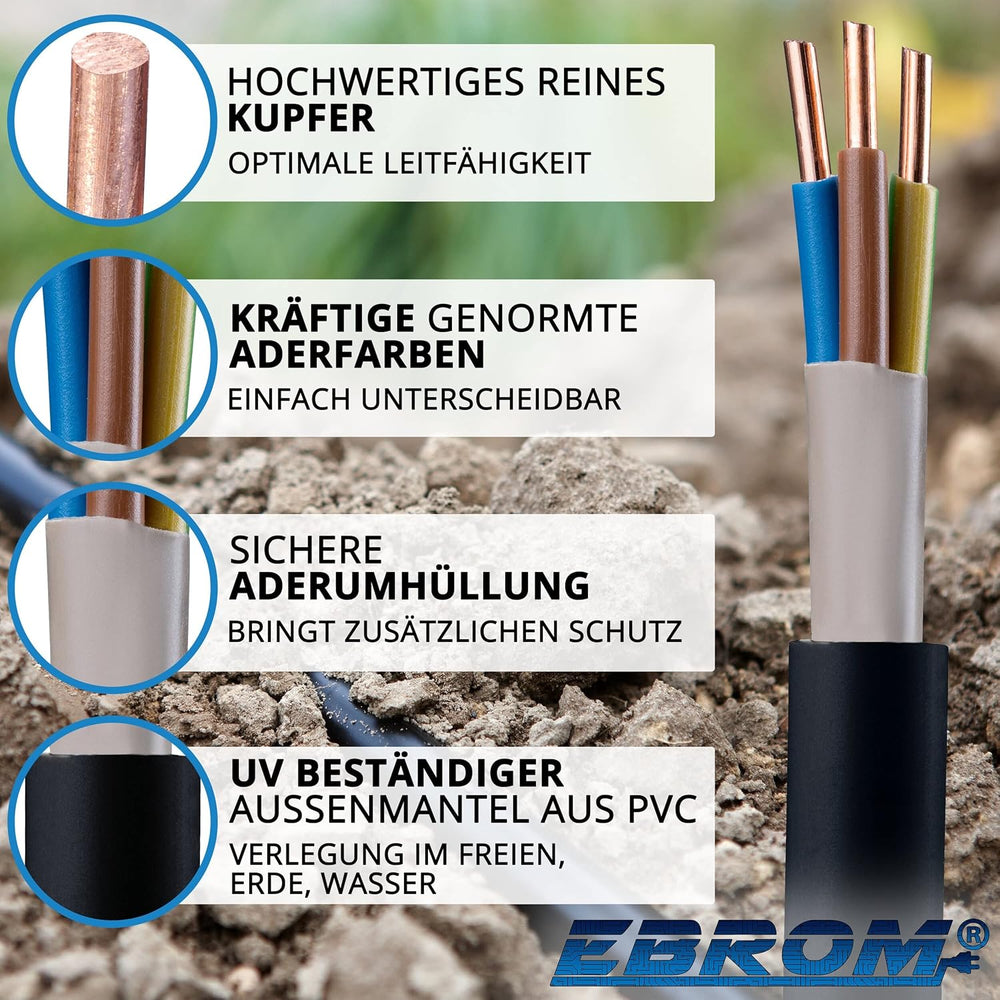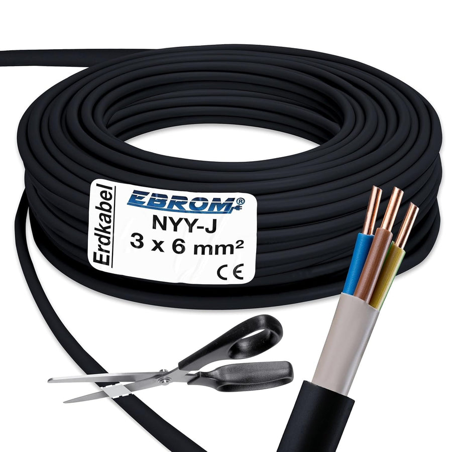 EBROM Starkstromkabel NYY-J 3x6 mm² - Erdkabel - NYY-J 3x6 mm² - schwarz - Meterware auf den Meter g