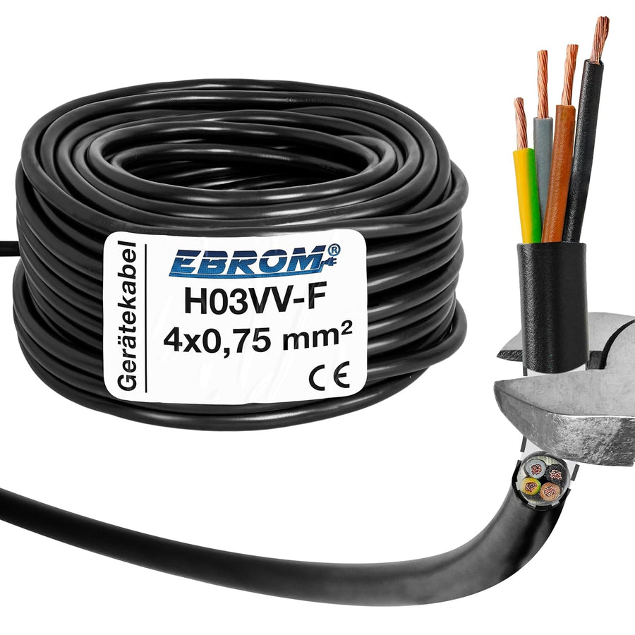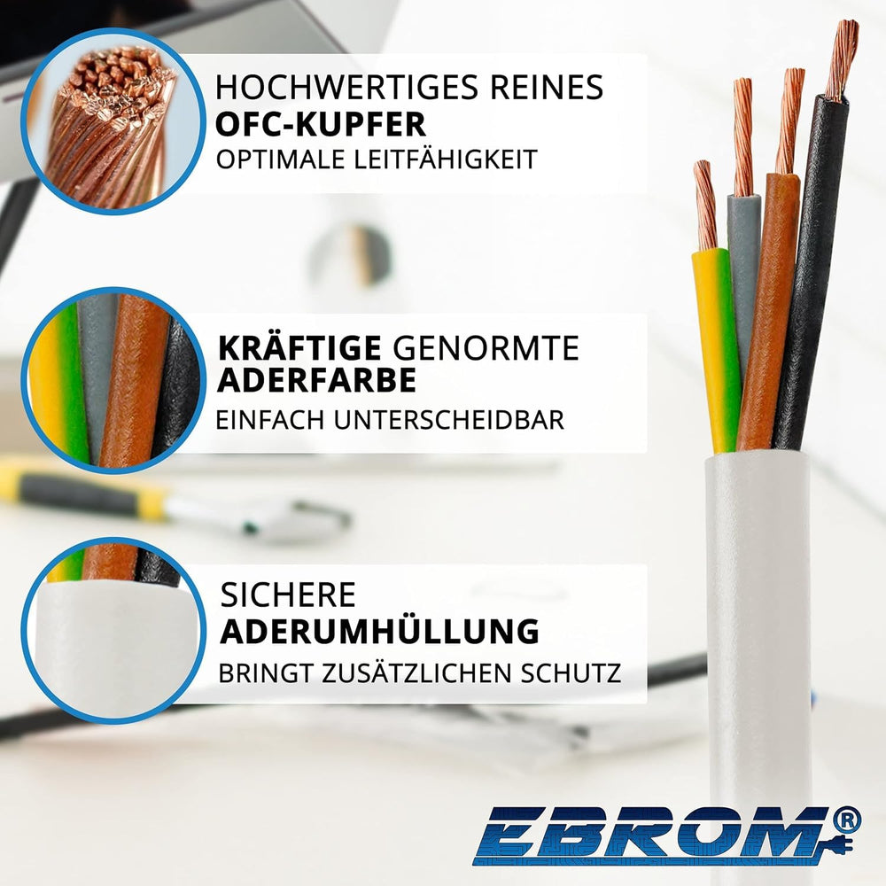 EBROM Kunststoff Schlauchleitung RUND, LED Kabel, Stromkabel, Leitung, Gerätekabel H03VV-F 4x0,75 mm