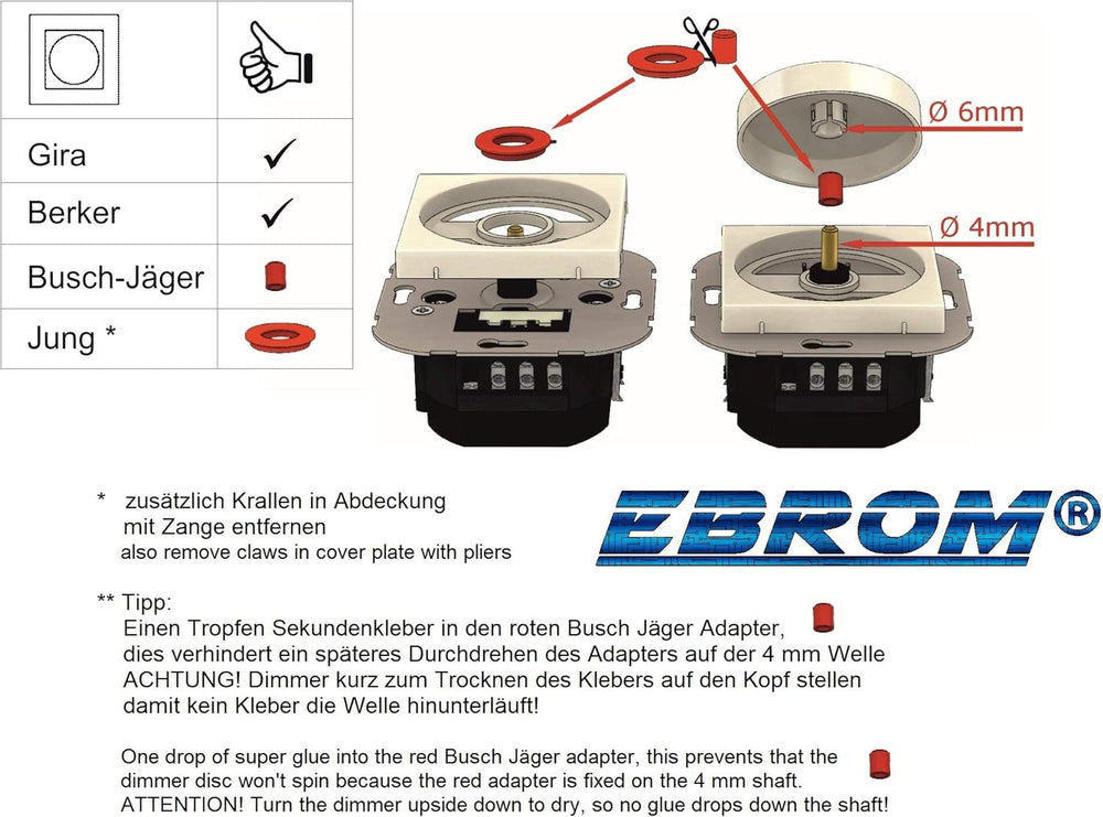 EBROM Unterputz UNIVERSAL LED Dimmer “der AllesDimmer" Drehdimmer Phasenabschnitt + Phasenanschnitt