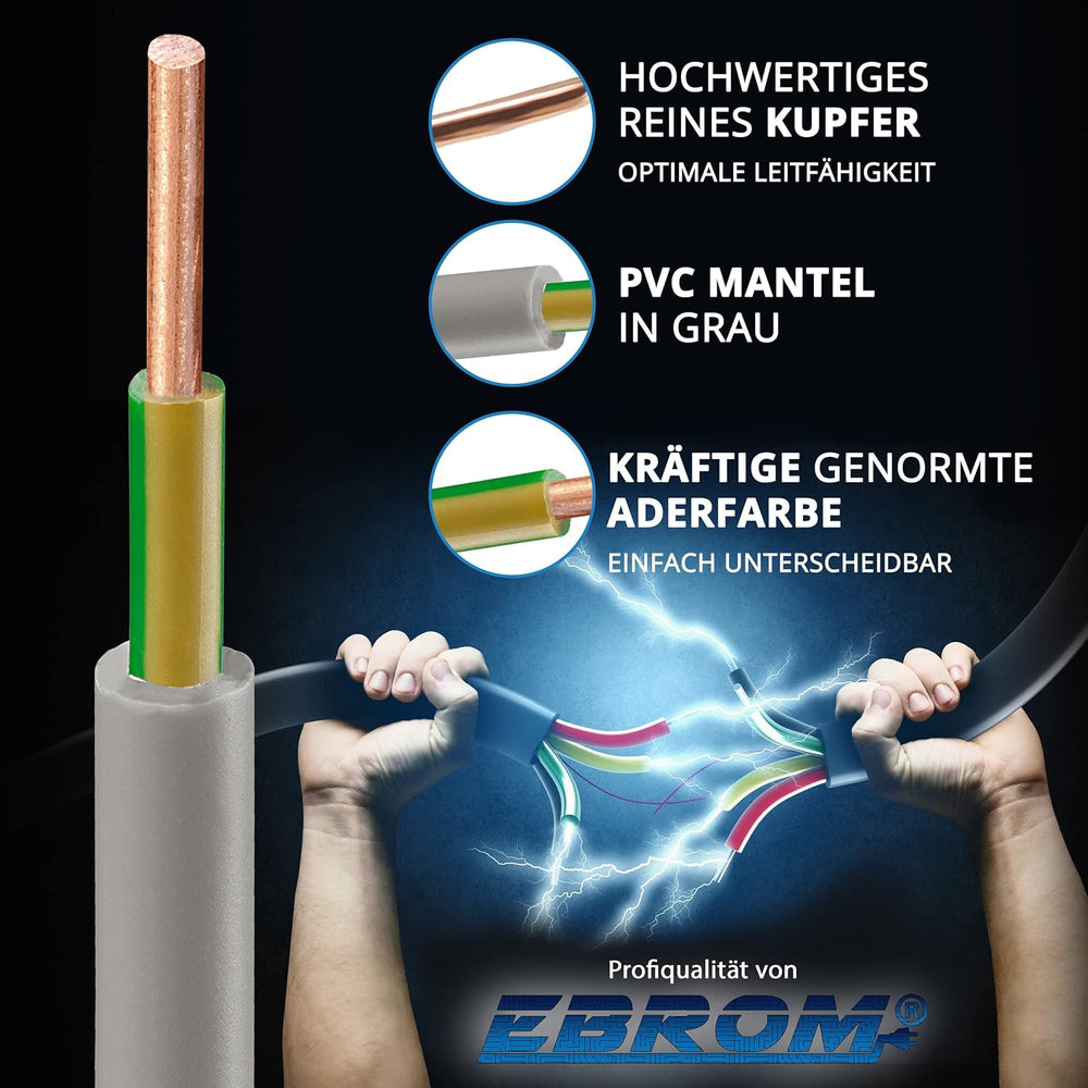 EBROM NYM-J 5x4 mm² Mantelleitung -viele Längen- Installationsleitung Installationskabel Feuchtraumk