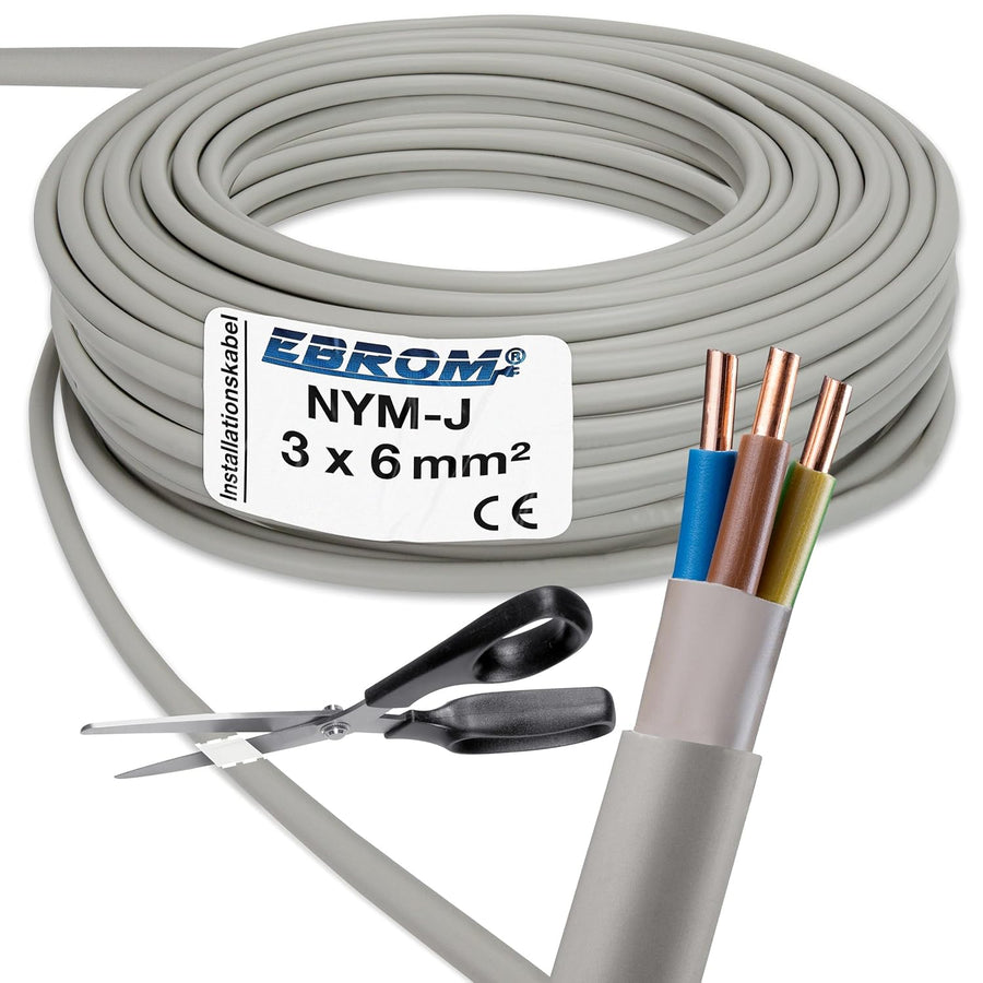 EBROM NYM-J 3x6 mm² - Mantelleitung - Installationskabel - Feuchtraumkabel - grau - Auswahl in 1 Met