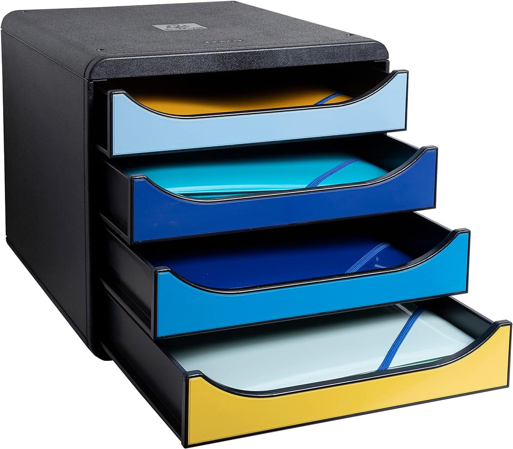 Exacompta 3124202D Ablagebox BeeBlue aus Recycling-Kunststoff mit 4 Schubladen für DIN A+ Dokumente