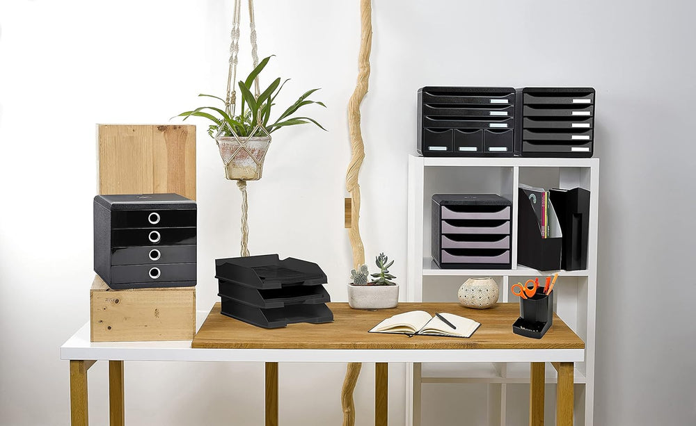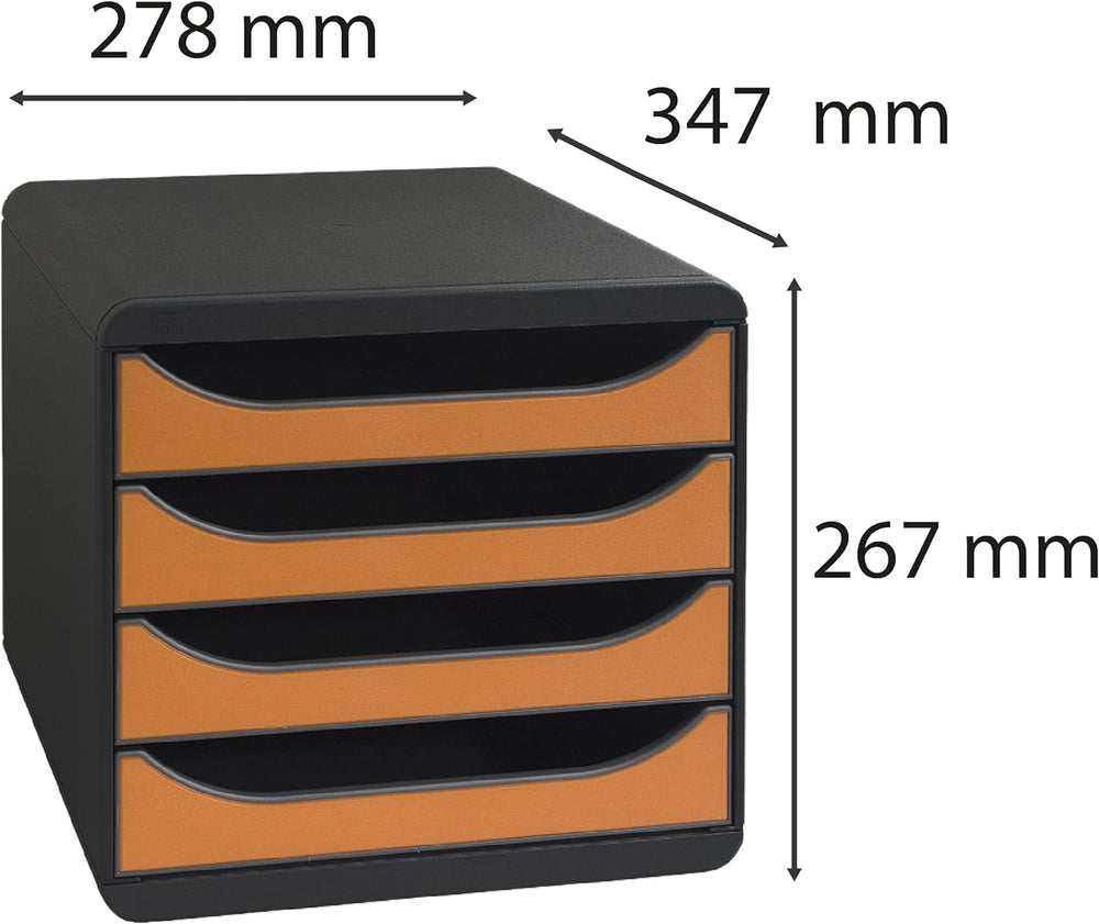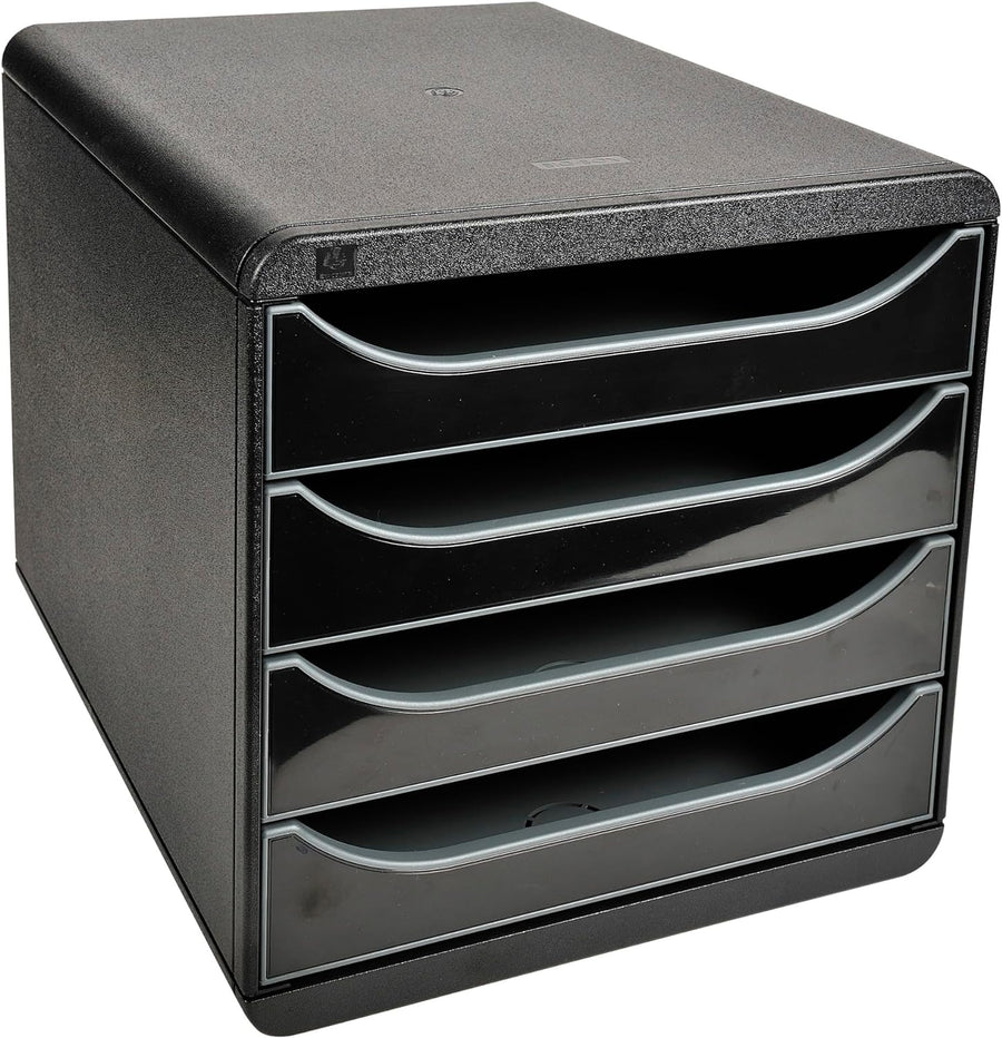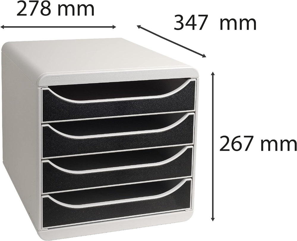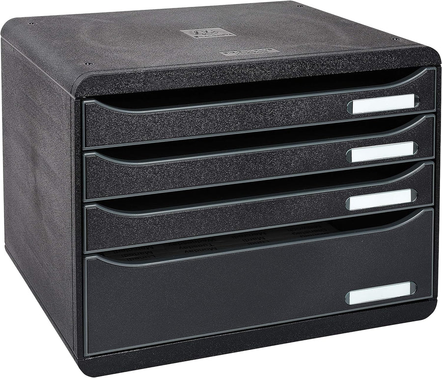 Exacompta 315714D Ablagebox EcoBlack Querformat mit 4 Schubladen für DIN A+ Dokumente. Belastbare Sc
