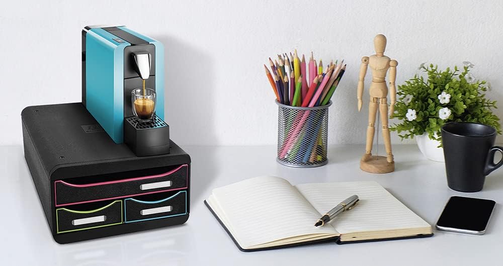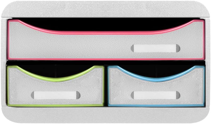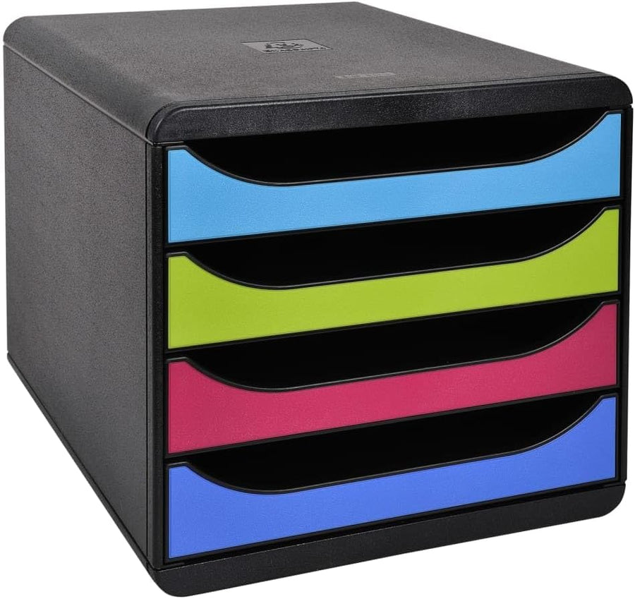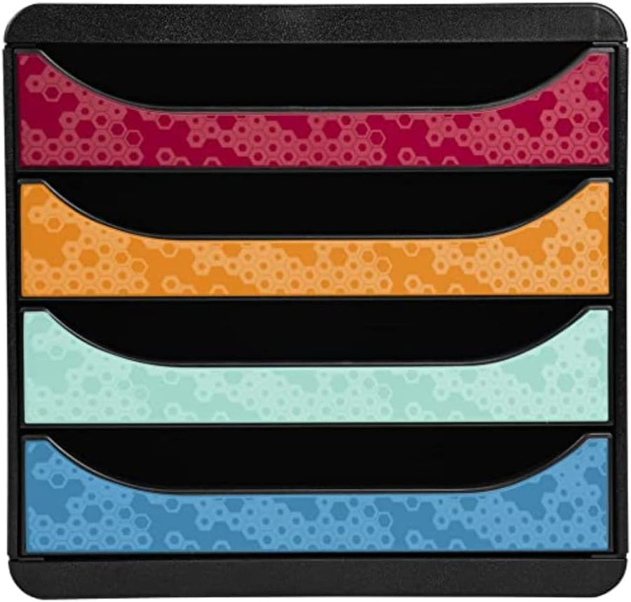 Exacompta 311914D Ablagebox Harlekin mit 1 Schublade für DIN A4+ und 2 schmalen Schubladen. Belastba