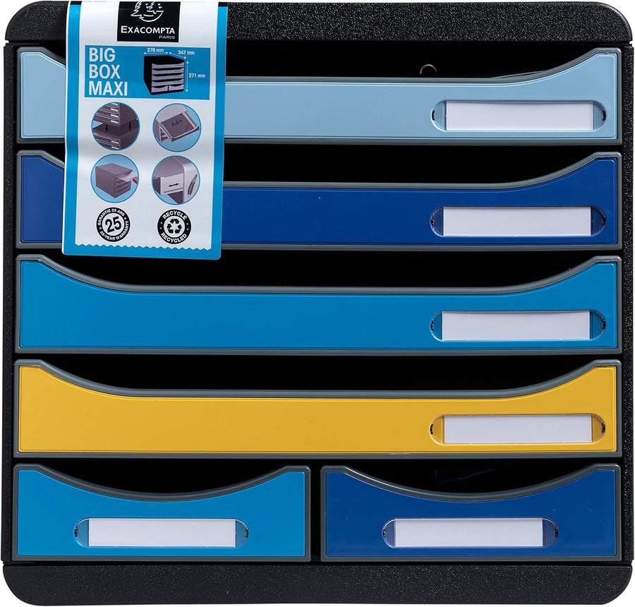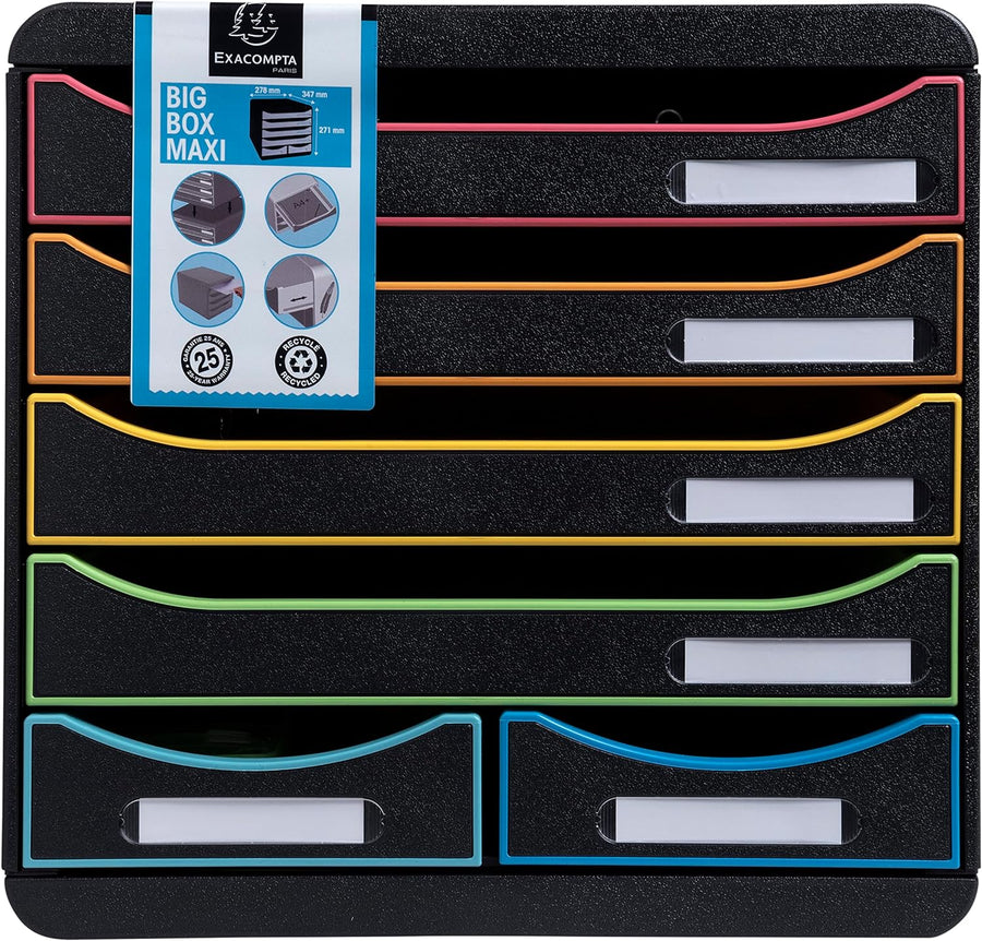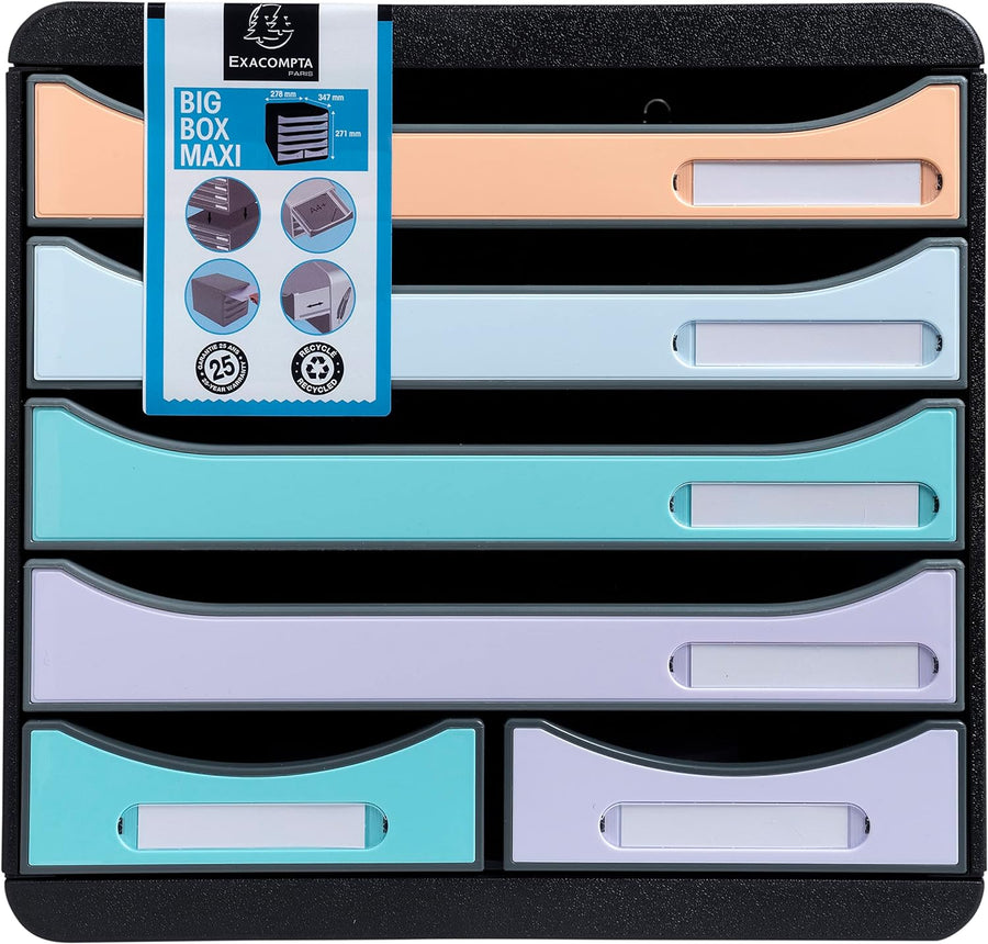 Exacompta 312914D Ablagebox Harlekin aus Recycling-Kunststoff mit 4 Schubladen für DIN A+ und 2 Schu