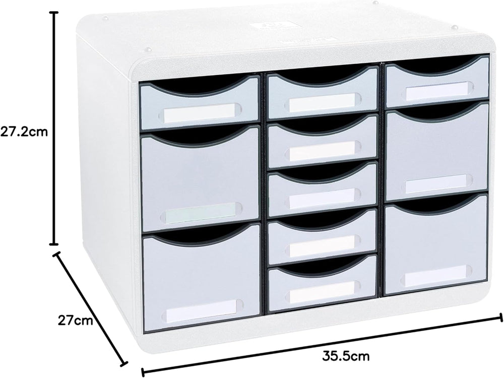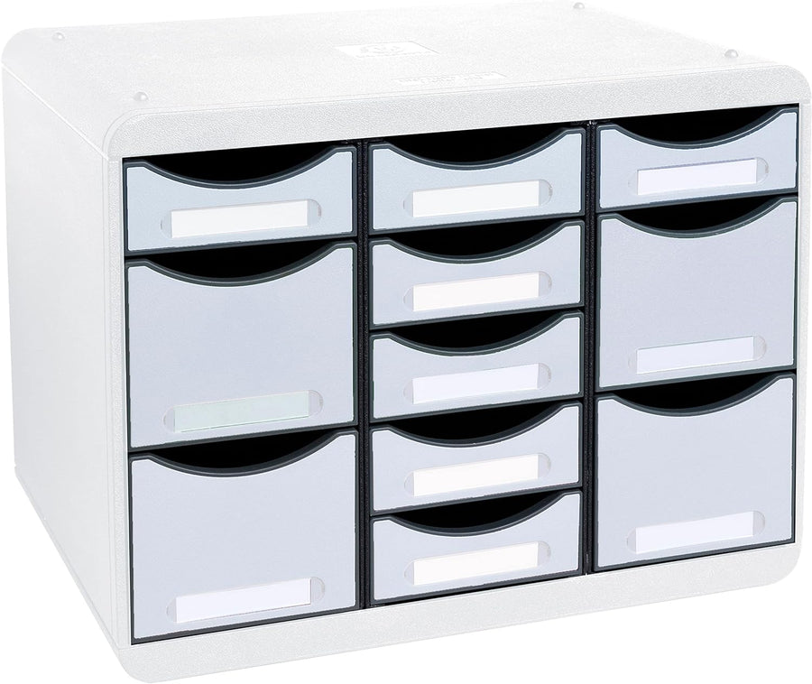 Exacompta 313740D Ablagebox Office aus Kunststoff mit 11 individuell platzierbaren Schubladen. Belas