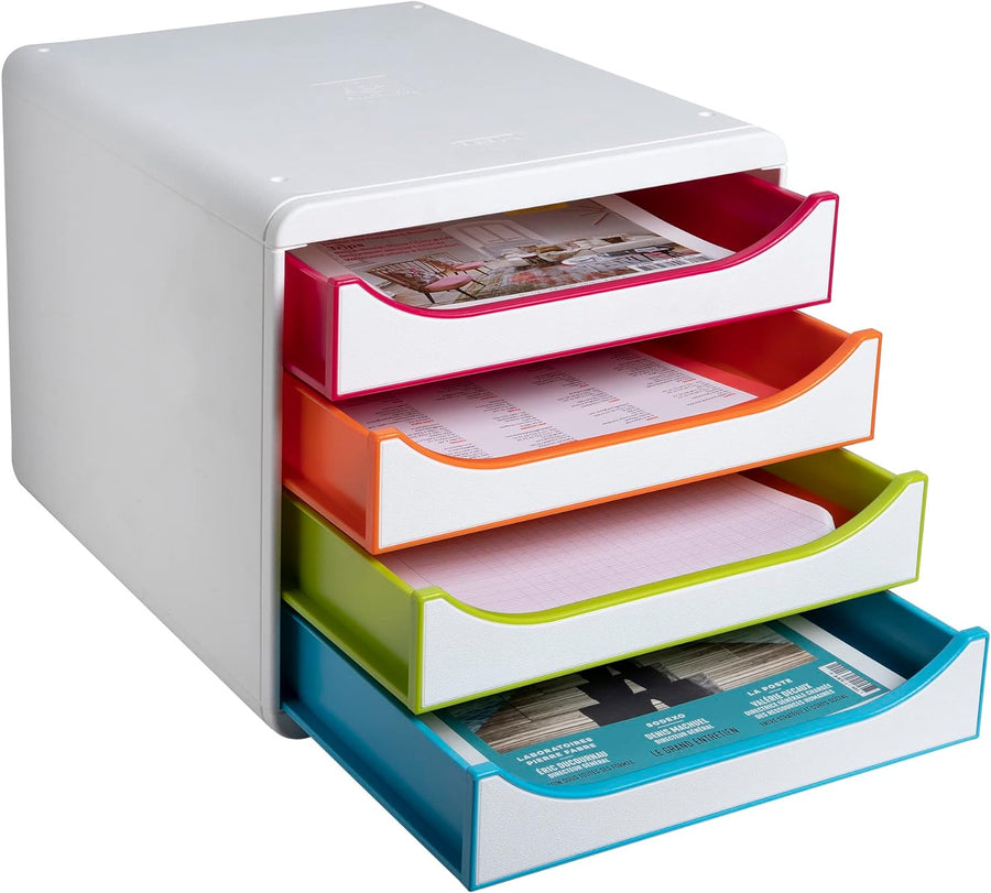Exacompta 310784D Premium Ablagebox mit 4 Schubladen für DIN A4+ Dokumente. Belastbare Schubladenbox