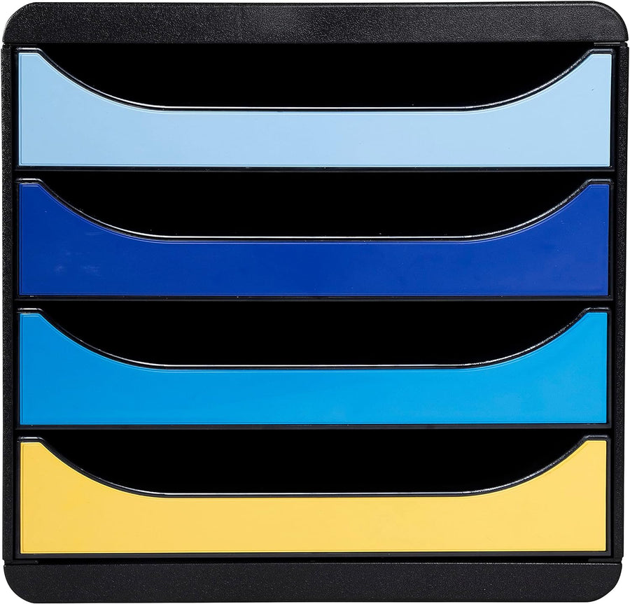 Exacompta 3104202D Ablagebox BeeBlue aus Recycling-Kunststoff mit 4 Schubladen für DIN A+ Dokumente.