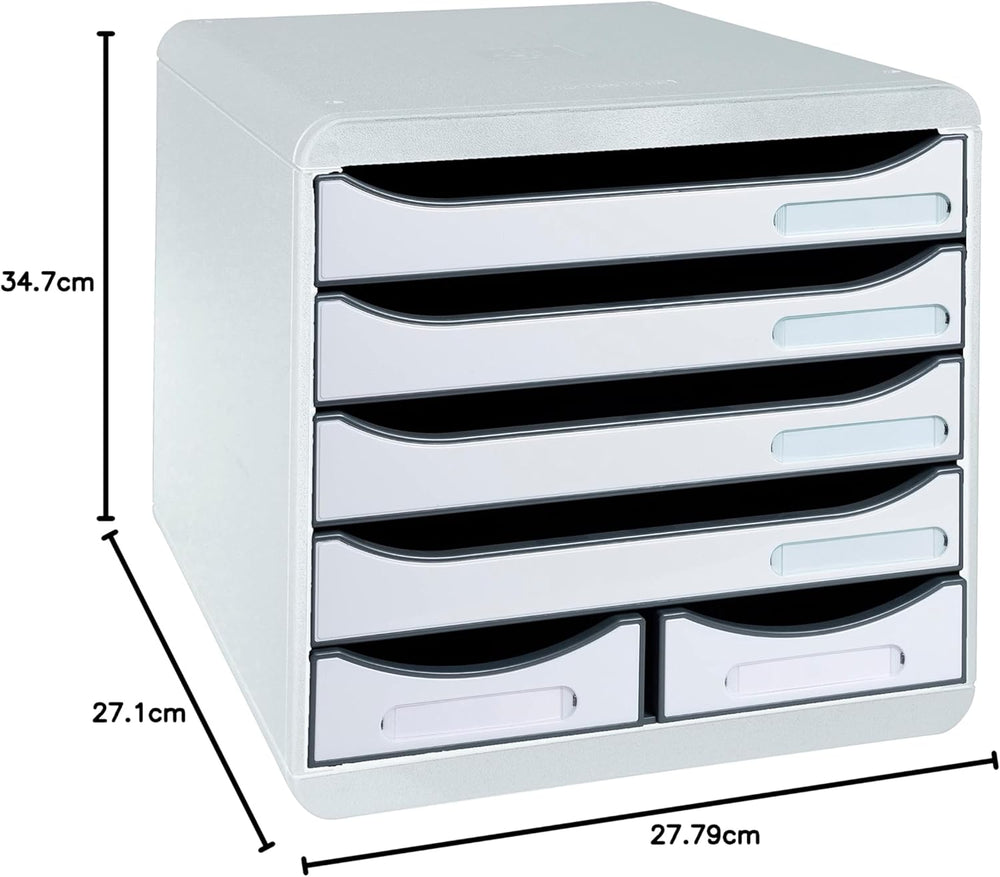 Exacompta 309989D Premium Ablagebox mit 5 Schubladen für DIN A4+ Dokumente. Stapelbare Schubladenbox