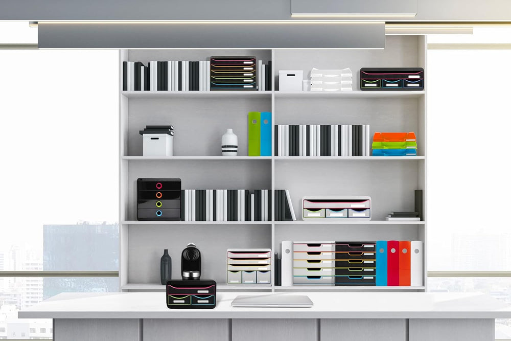 Exacompta 311798D Ablagebox Iderama mit 1 Schublade für DIN A4+ und 2 schmalen Schubladen. Belastbar