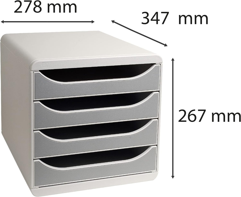 Exacompta 3101928D Premium Ablagebox mit 4 Schubladen für DIN A4+ Dokumente. Belastbare Schubladenbo