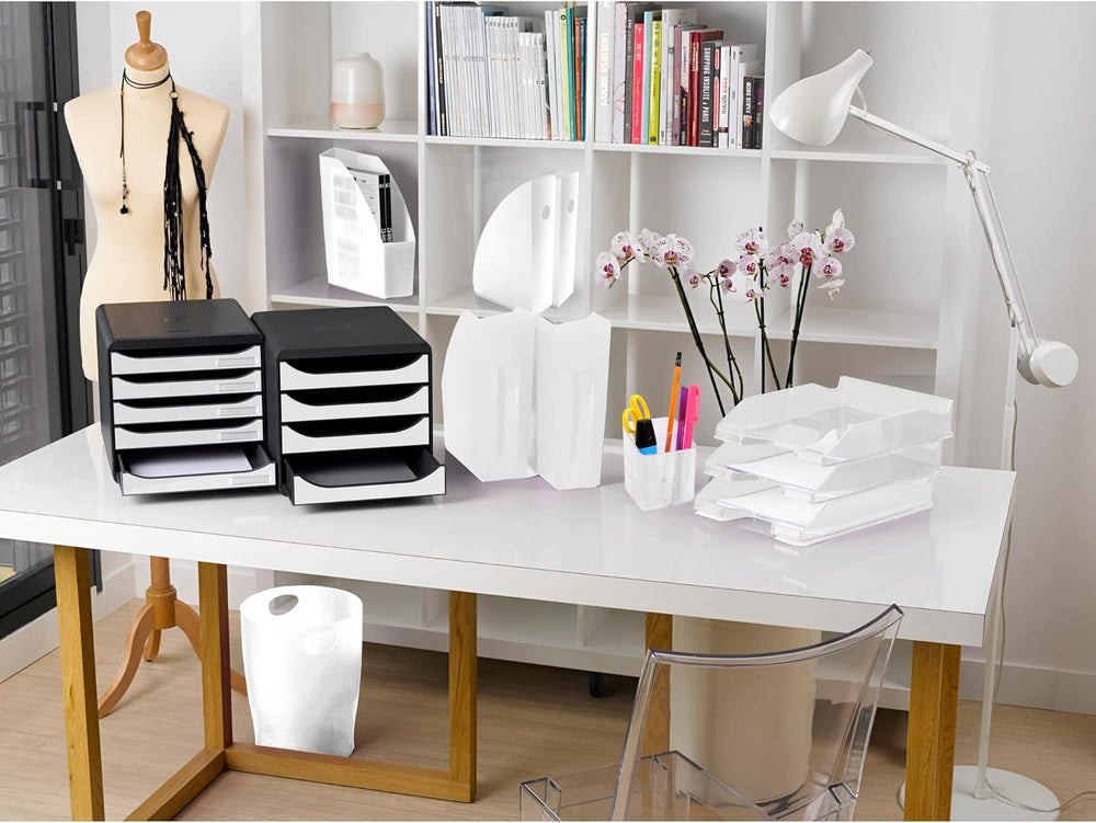 Exacompta 310041D Premium Ablagebox mit 4 Schubladen für DIN A4+ Dokumente. Belastbare Schubladenbox