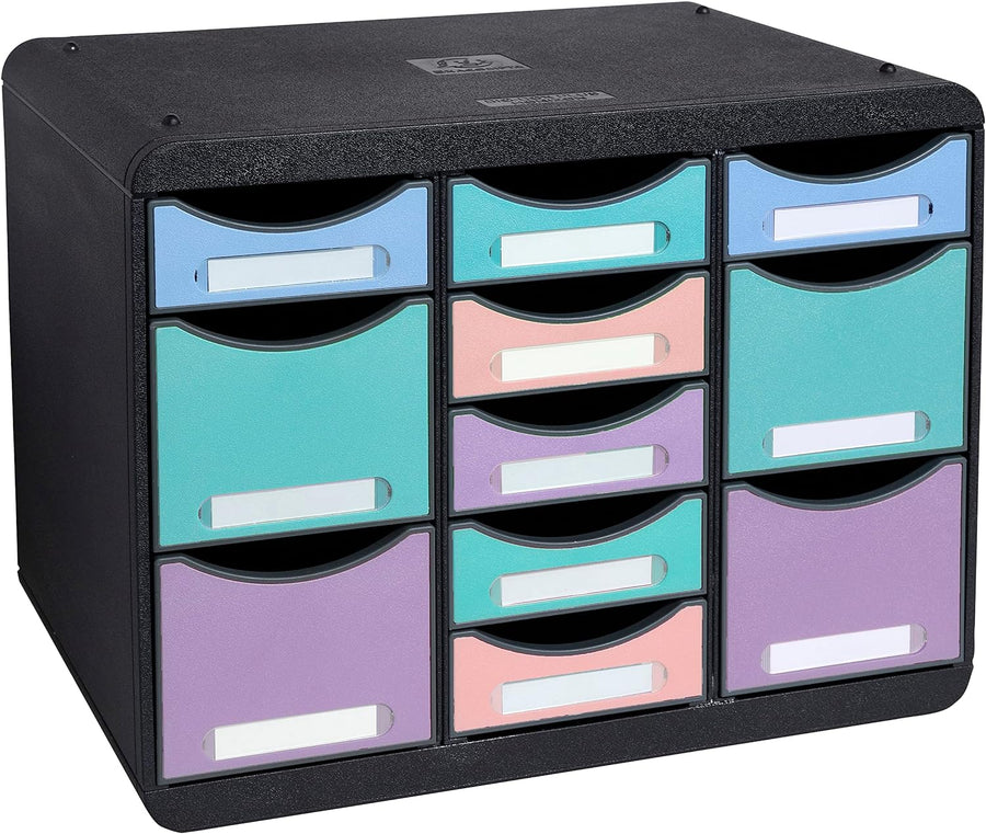Exacompta 313914D Ablagebox Harlekin aus Recycling-Kunststoff mit 11 individuell platzierbaren Schub