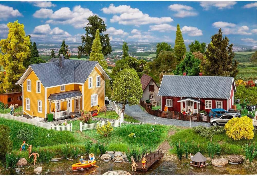 FALLER 2 Schwedenhäuser Modellbausatz mit 151 Einzelteilen 154 x 115 x 110 mm, 138 x 95 x 75 mm I Mo