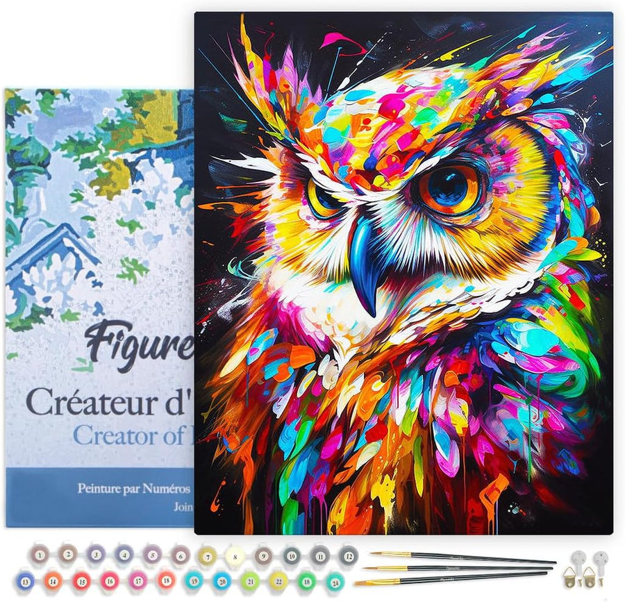 Figured'Art Malen Nach Zahlen Erwachsene Mit Rahmen Eule Farbenfroh Abstrakt - Paint by Numbers Bast