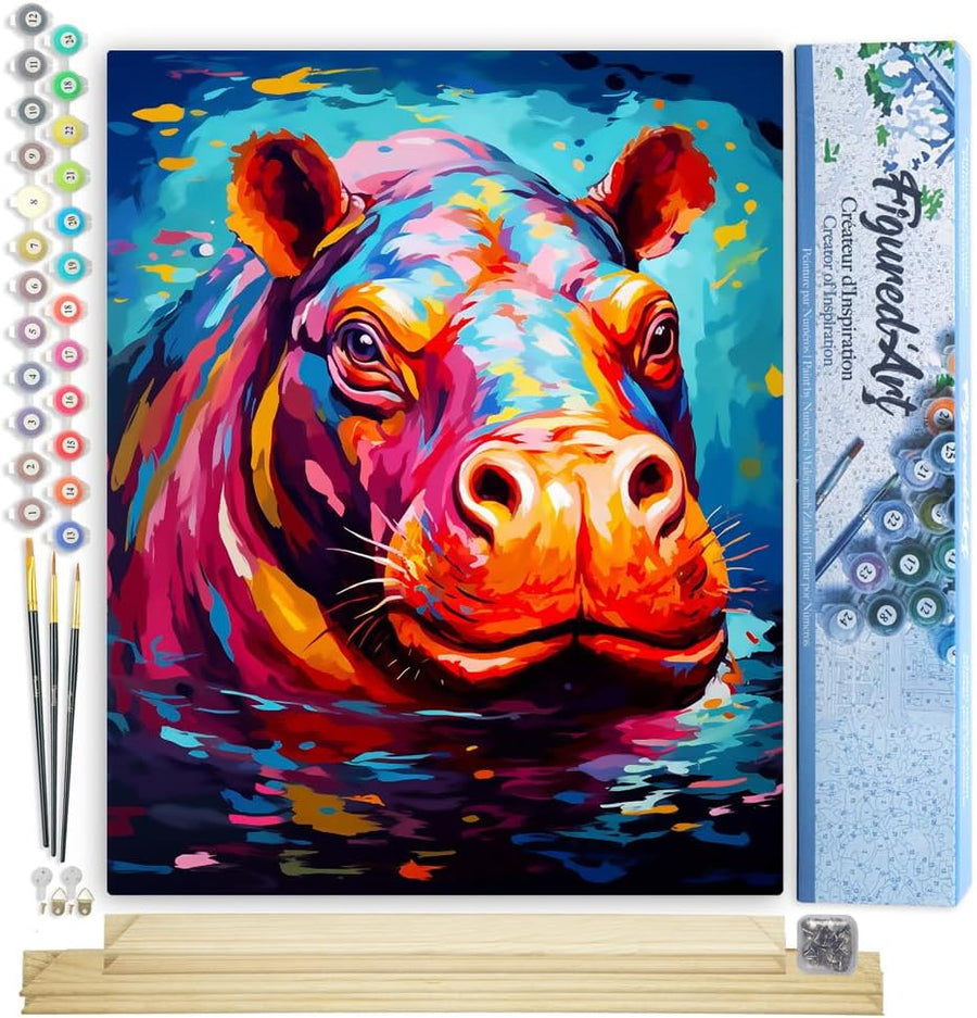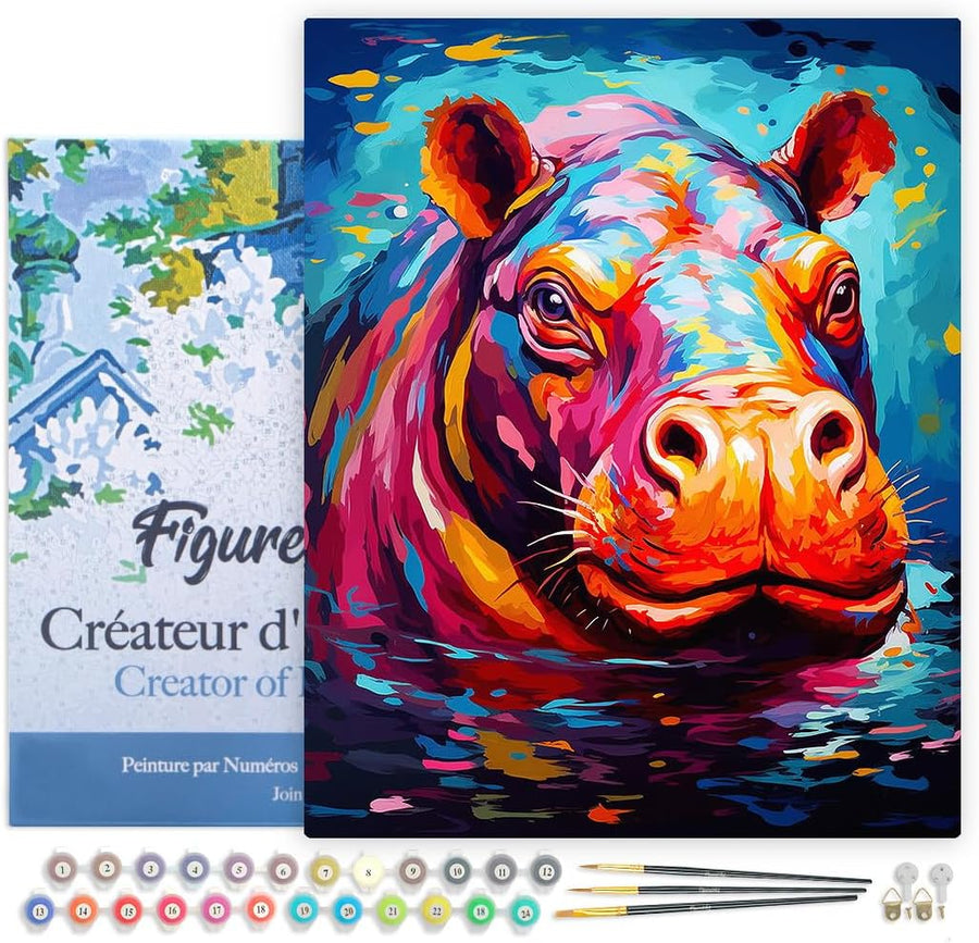 Figured'Art Malen Nach Zahlen Erwachsene Mit Rahmen Flusspferd Farbenfroh Abstrakt - Paint by Number