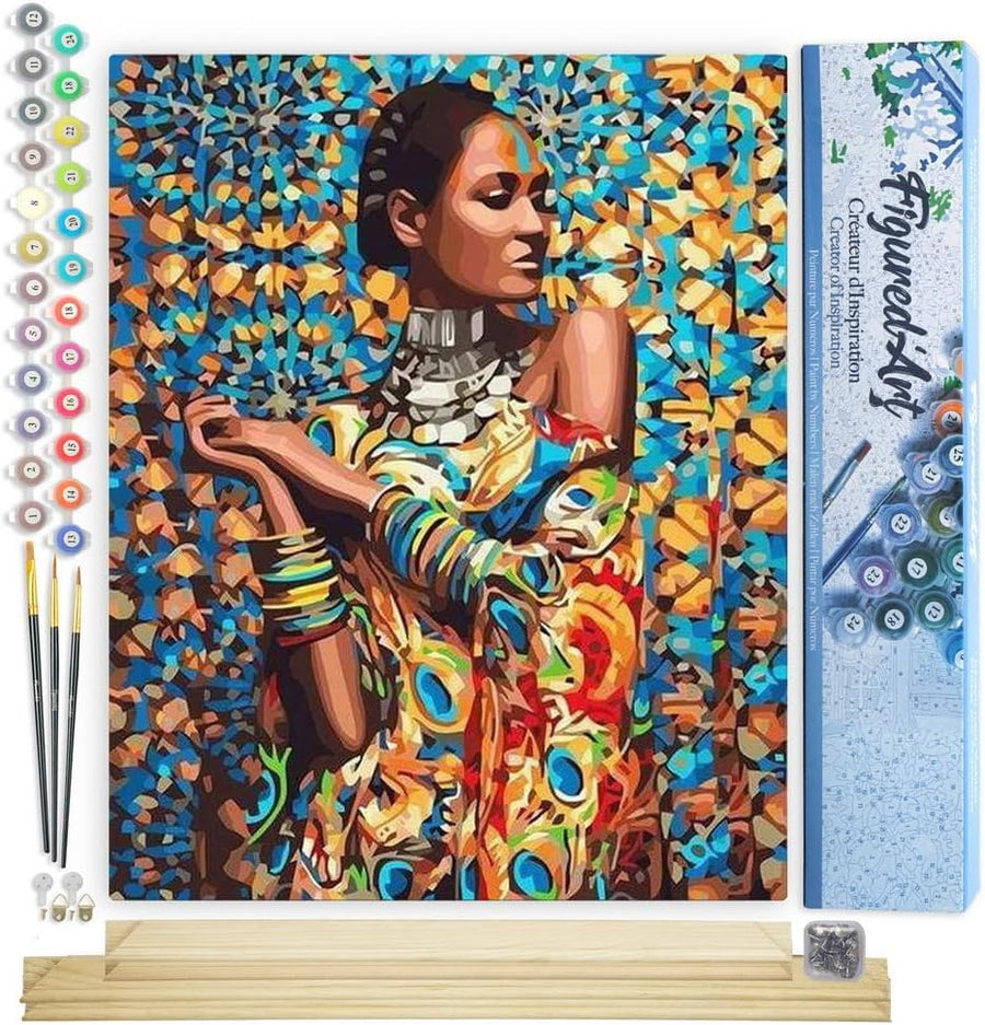 Figured'Art Malen Nach Zahlen Erwachsene Mit Rahmen Frau im Afrikanischen Turban - Paint by Numbers
