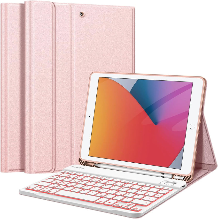 Fintie Tastatur Hülle für iPad 9 8 7 Generation (2021/2020/2019) 10.2 Zoll 7-farbig beleuchtete abne