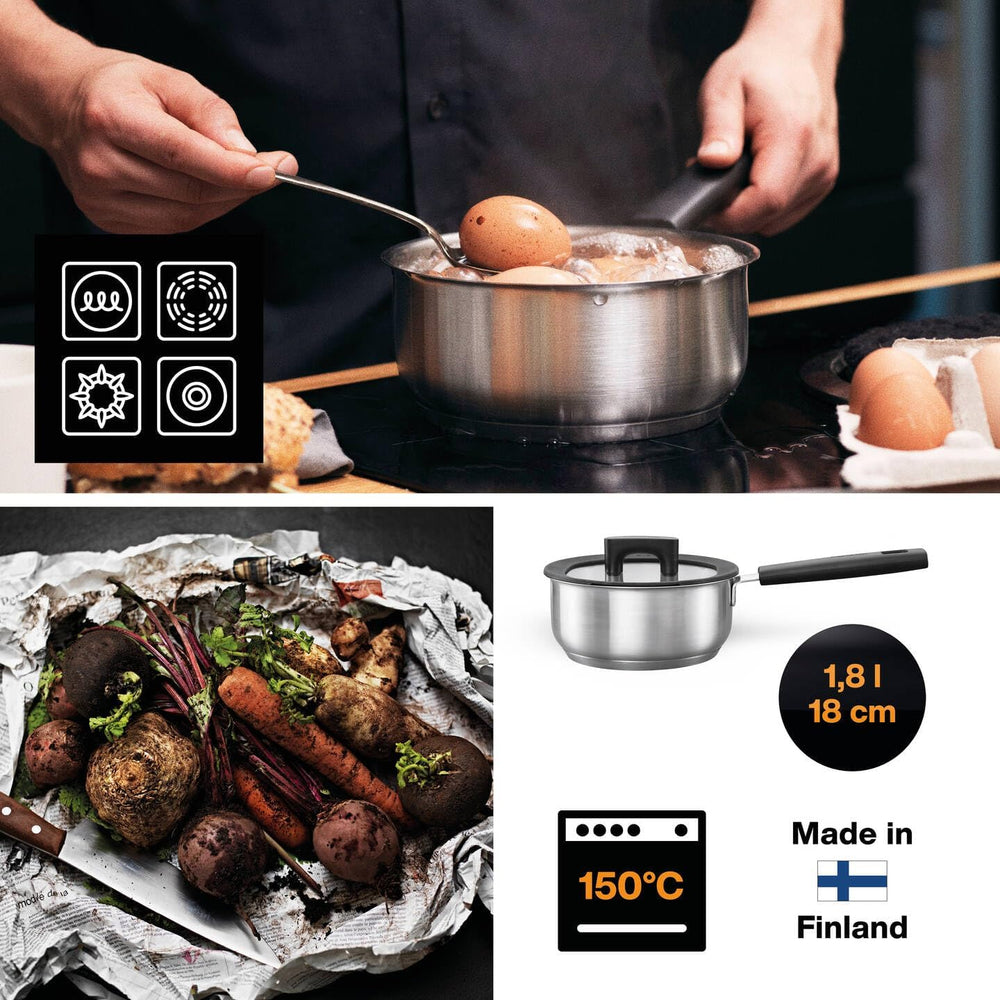Fiskars Stieltopf mit Deckel, Ø 18 cm, Füllmenge: 1,8 Liter, Für alle Kochfelder geeignet, Rostfreie