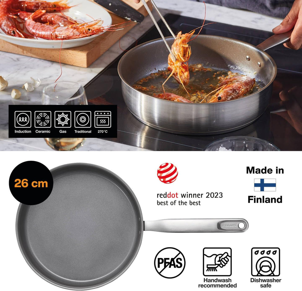 Fiskars Sautierpfanne mit Deckel, Ø 26 cm, Füllmenge: 2,8 Liter, Für alle Kochfelder geeignet, Alumi