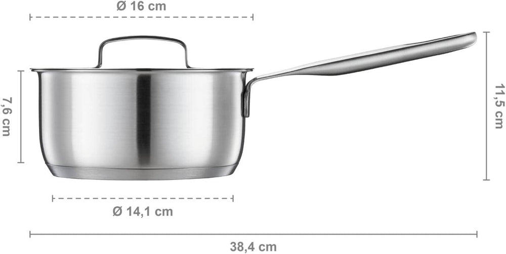 Fiskars Stieltopf mit Deckel für alle Herdarten, Füllmenge: 1,5 Liter, Rostfreier Stahl/Kunststoff,